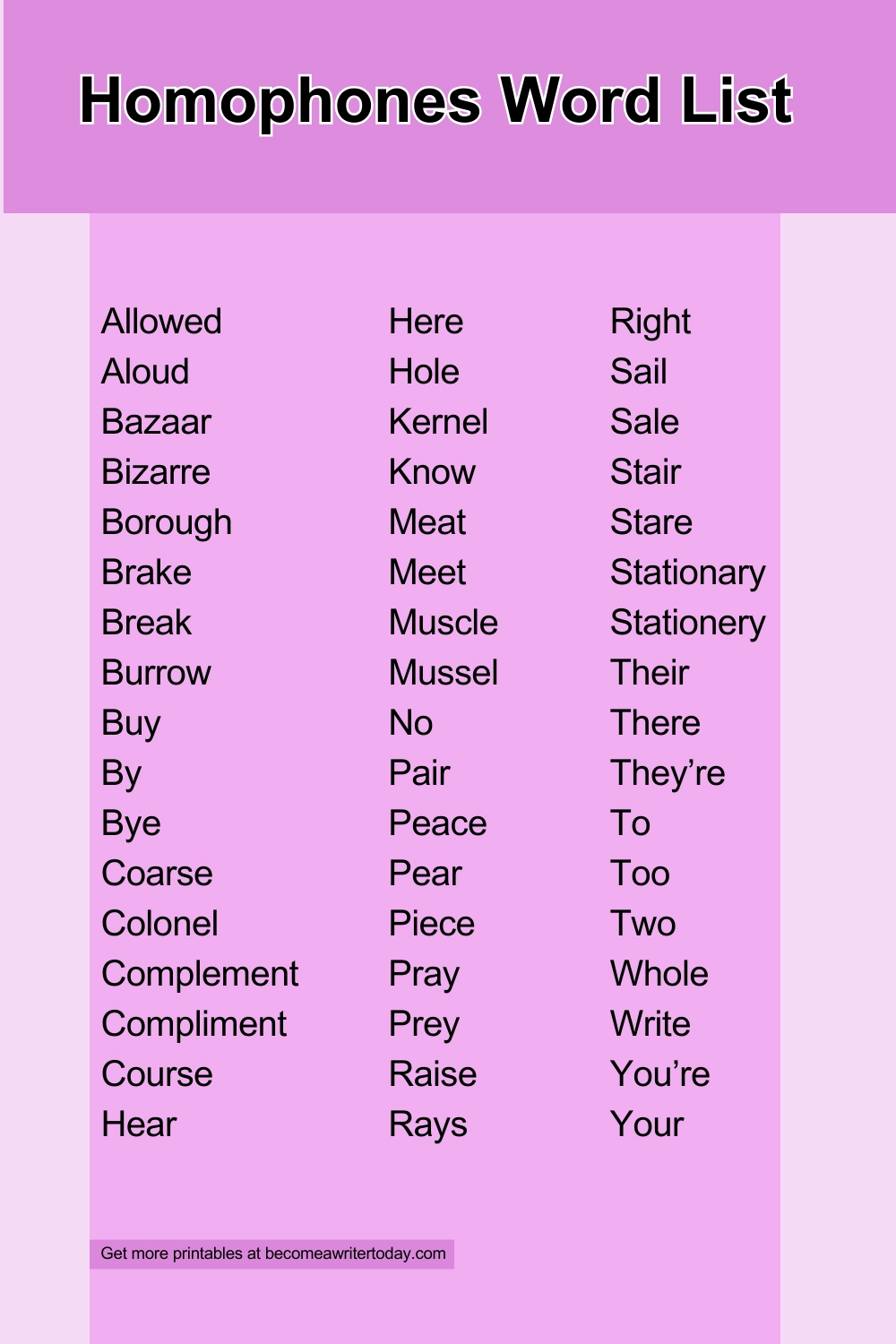 So, if you’re looking to expand your vocabulary, work on your spelling, or simply have fun exploring the quirks of the English language, a 100 homophones list printable is a valuable tool to have at your disposal. Download one today and start mastering these tricky words!