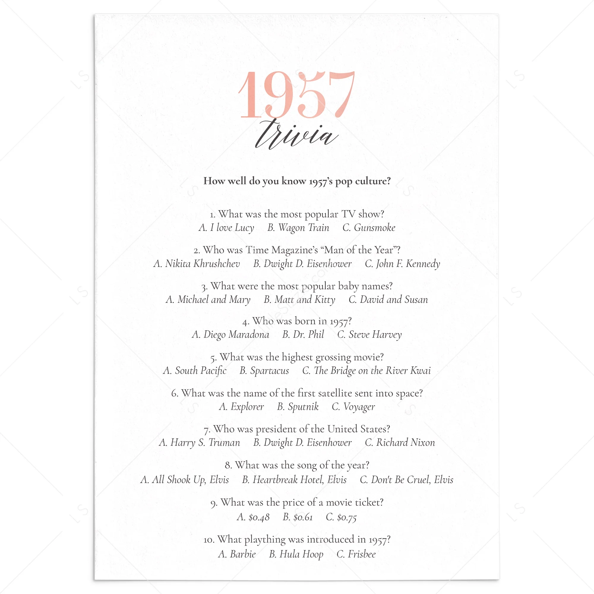Test Your Knowledge with the 1957 Trivia Game Printable