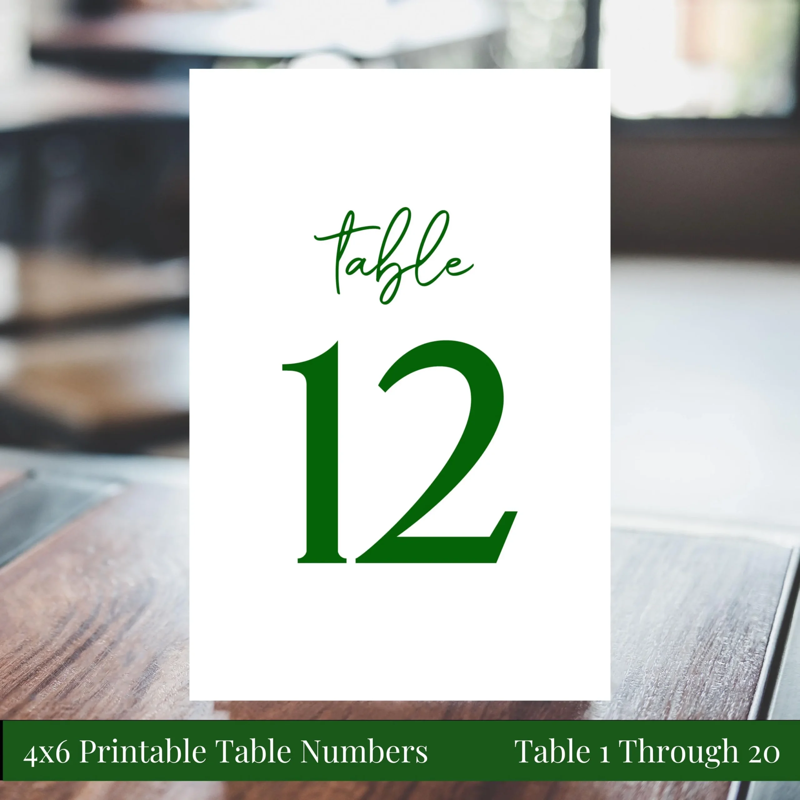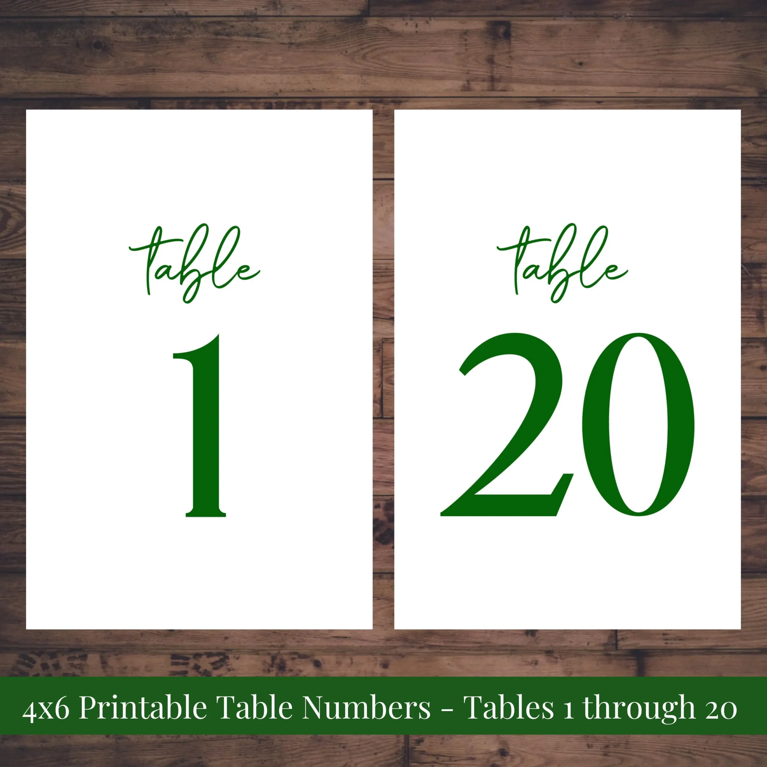 4×6 Printable Wedding Table Number Signs Tables 1 20 Romantic Emerald Green Modern Rehearsal Dinner You Print Instant Download Etsy
