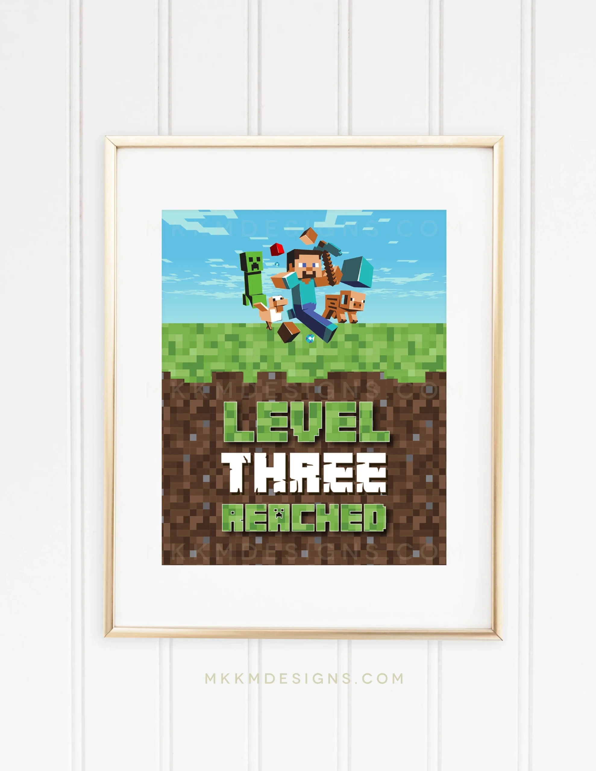 Level Reached Minecraft Party Sign Merry Grace Design Co