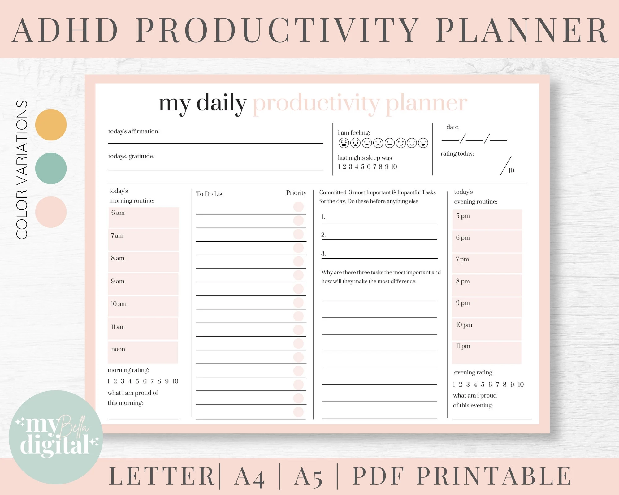 ADHD Daily Planner Printable Hourly Planner Organized Planner ADHD Planner Printable Planner Downloadable Planner Digital Planner Etsy