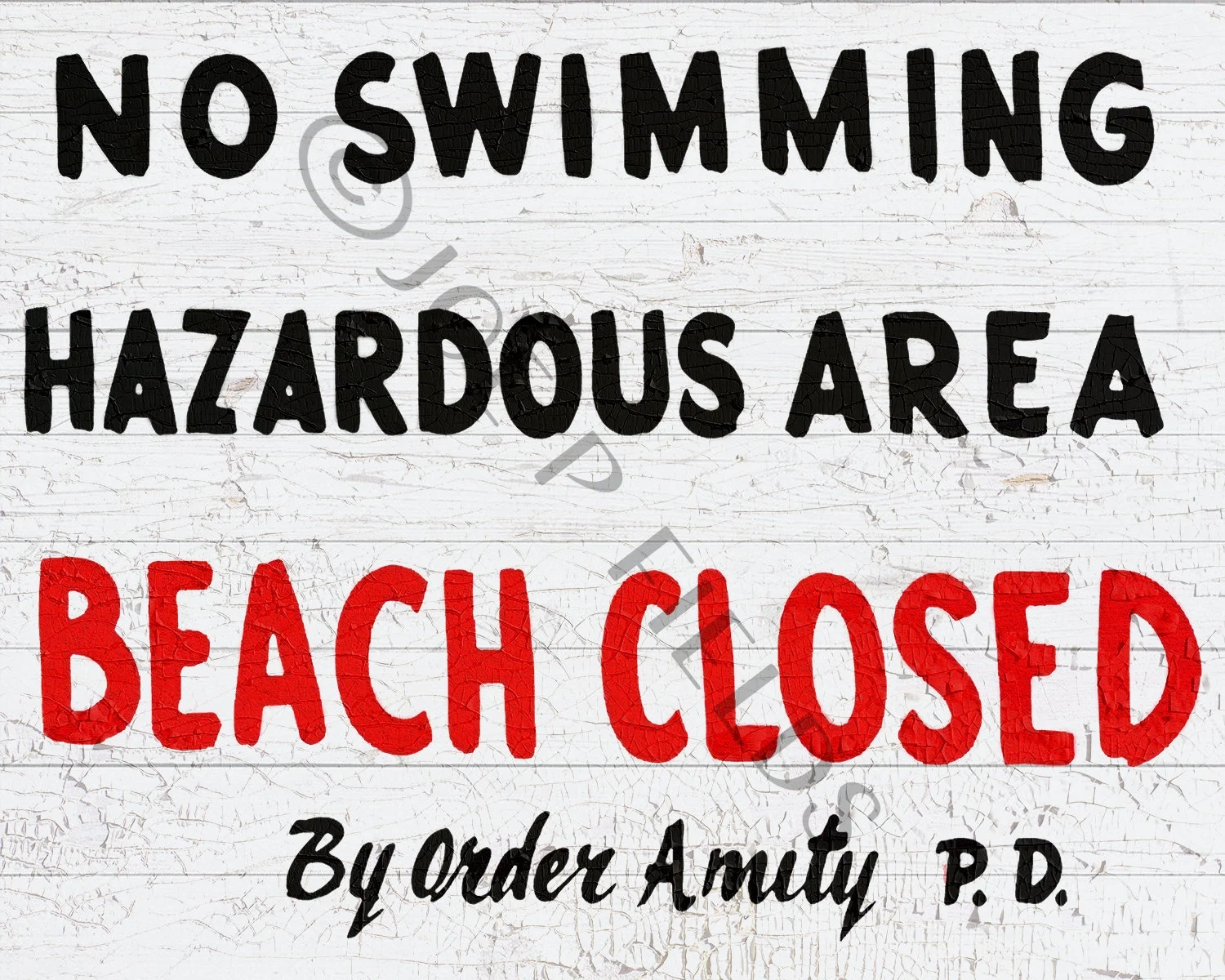 Jaws Amity Island beach Closed Sign Print Replica Polly Did The Printing Etsy Israel