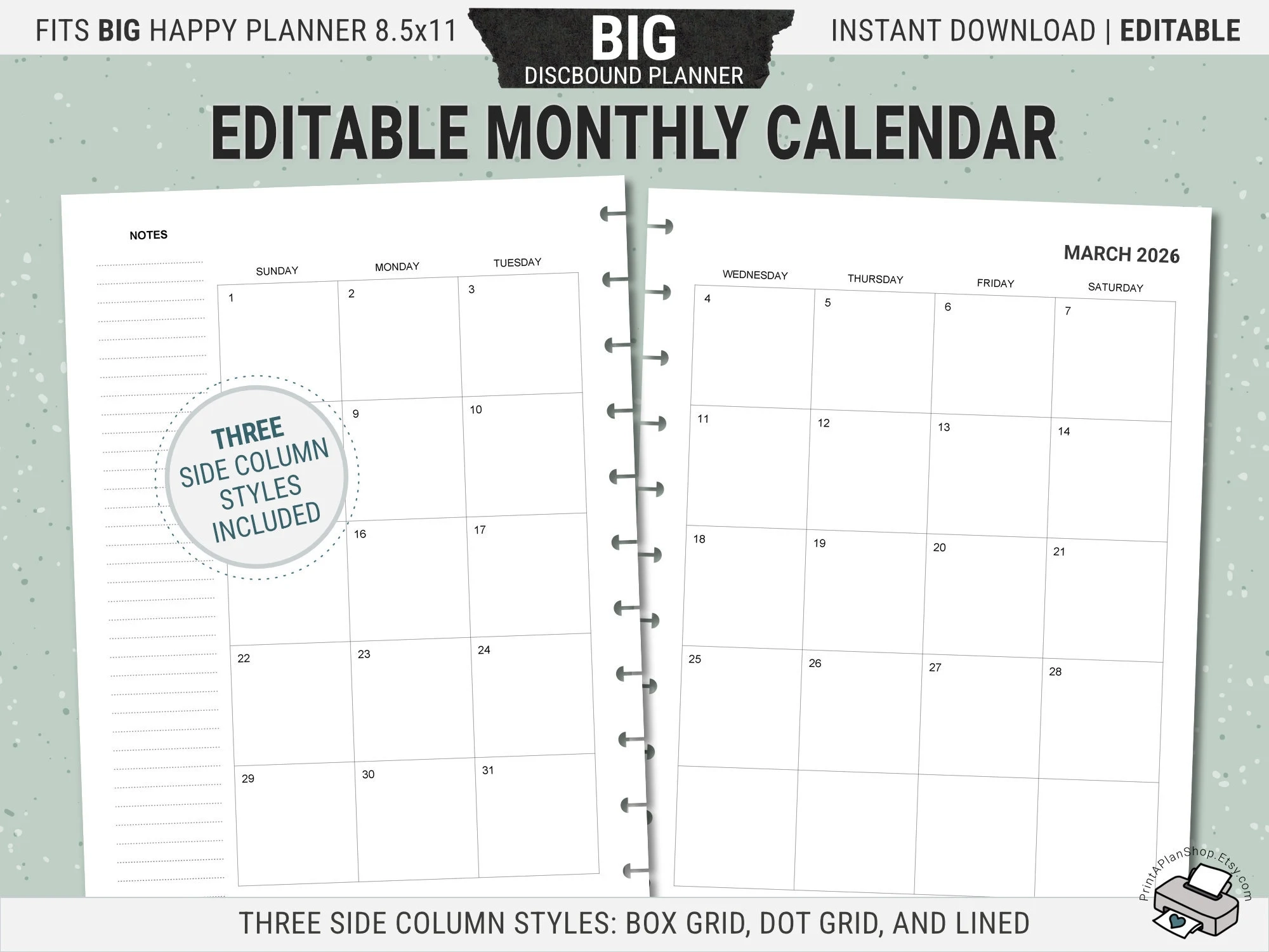 Big Happy Planner Printable Calendar Pages