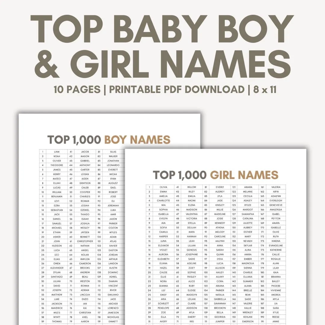 Top Boy Names List Printable For 2025 Top Girl Names List Printable For 2025 1 000 Baby Boy Girl Names For 2025 Most Popular Baby Names Etsy