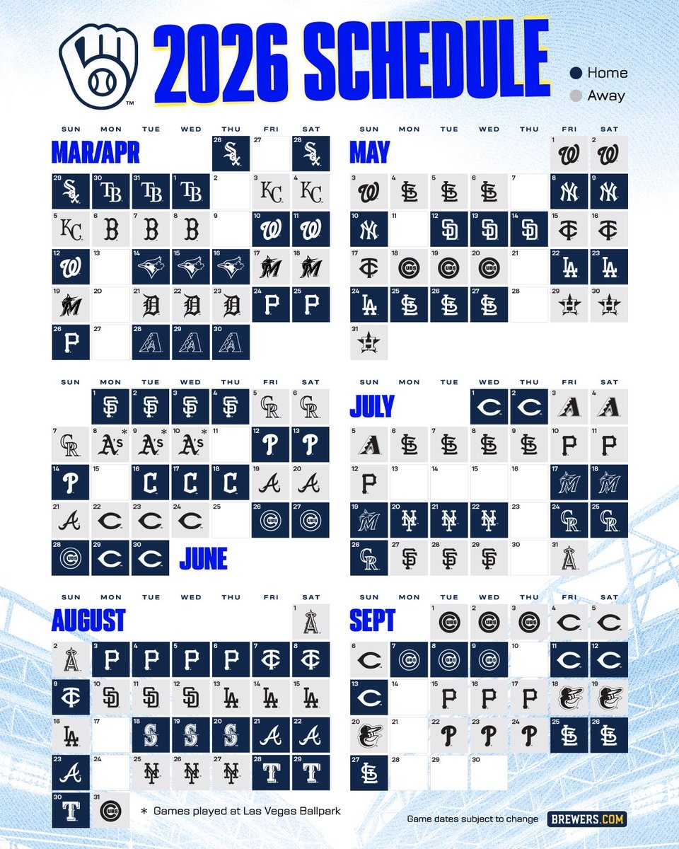 Milwaukee Brewers On X Behold your Milwaukee Brewers 2026 Regular Season Schedule Https t co USvD3ZFRuL X