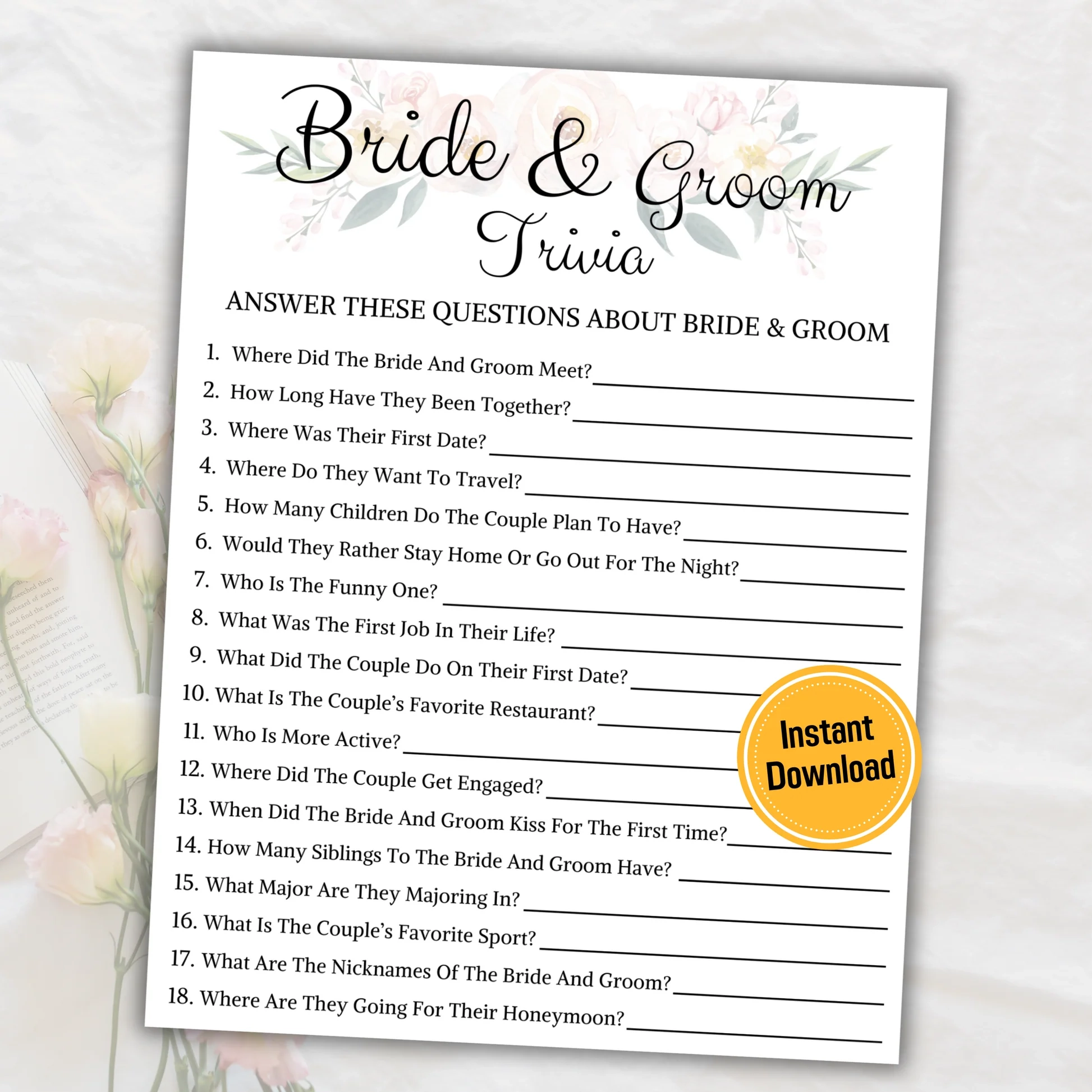 Bride And Groom Trivia Printable