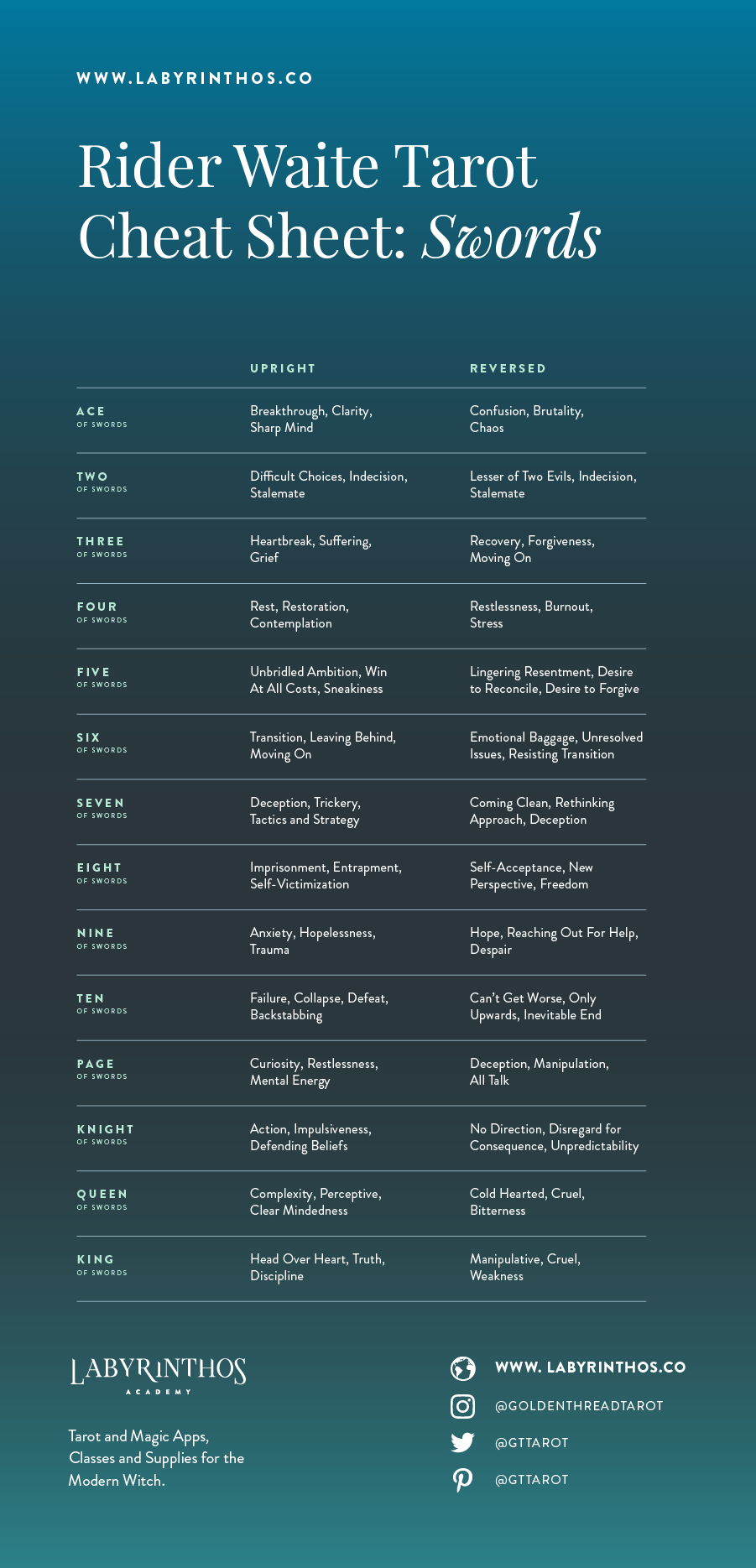 Tarot Meaning Cheat Sheets Infographics Plus Free Printable Resource Labyrinthos
