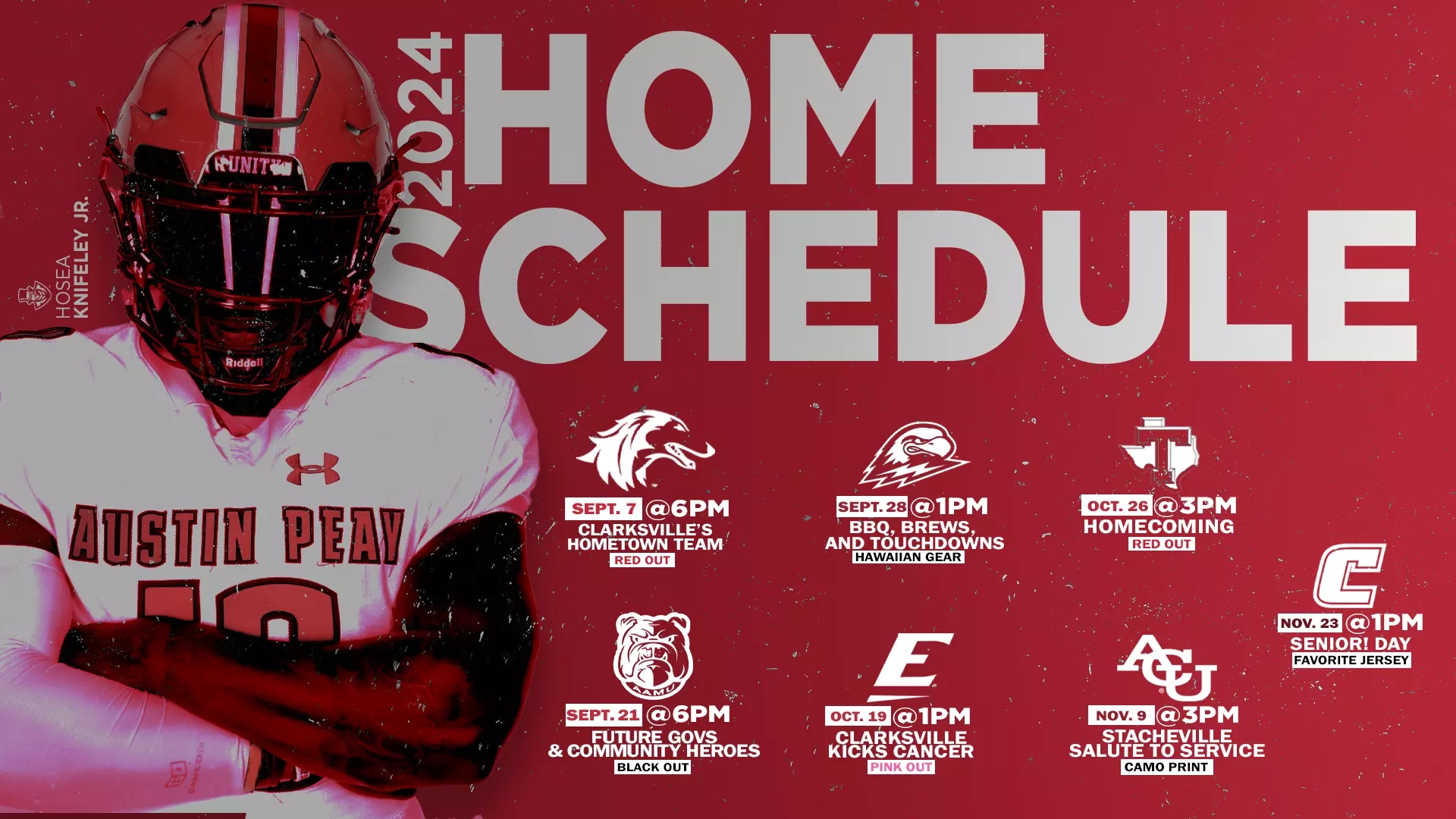 Govs Announce Home Kickoff Times And Game Themes For 2024 Football Season Austin Peay State University Athletics