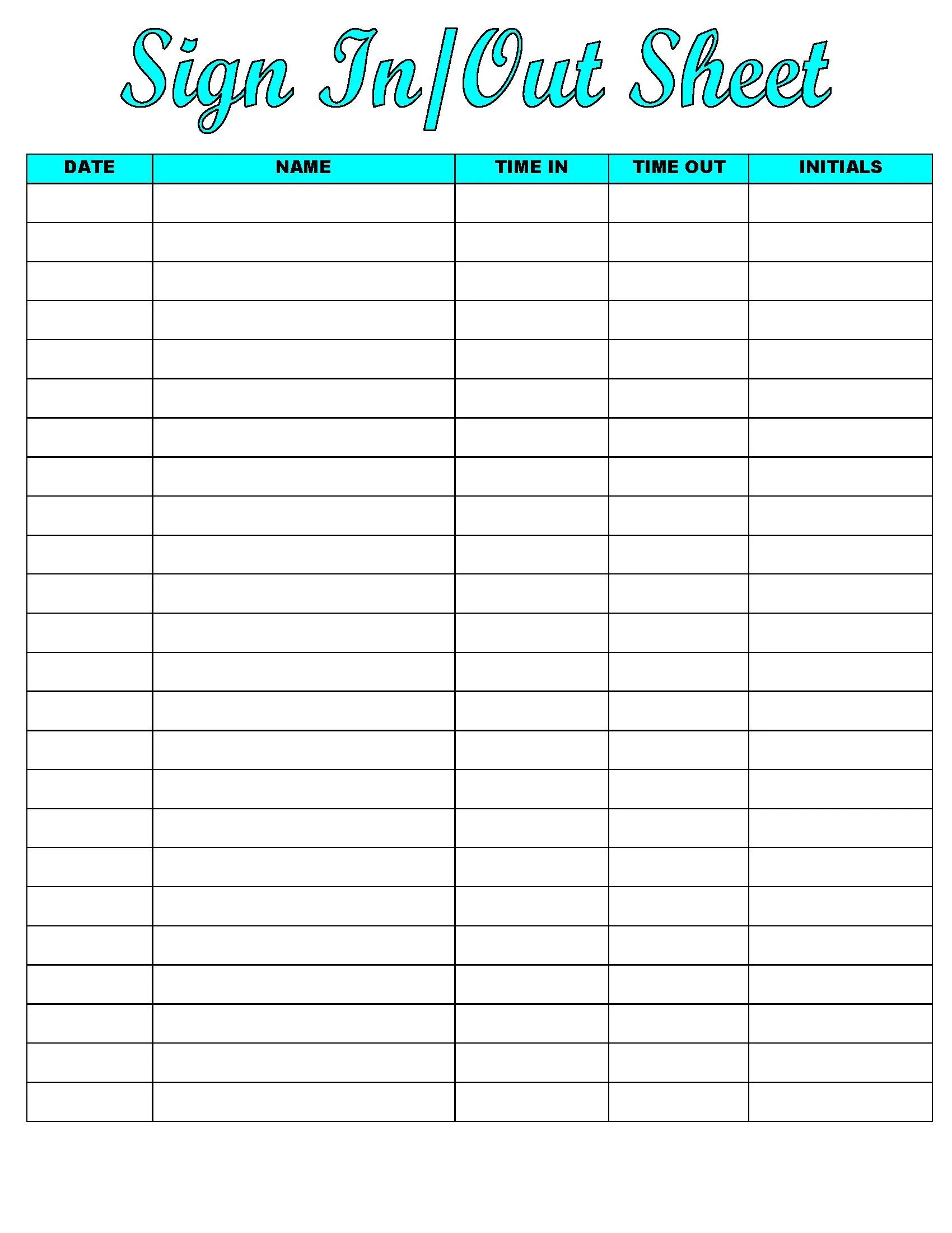 Clock In And Out Sheets Printable