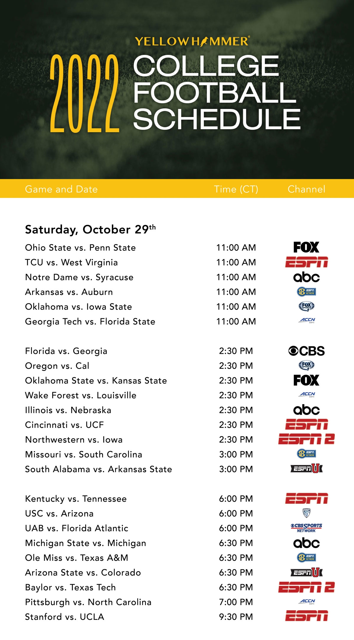 With so many games to choose from each week, it can be overwhelming to keep track of who’s playing when and where. That’s where our printable schedule comes in handy. Simply print it out, hang it on your fridge, and never miss a game again. It’s the perfect way to plan your weekend around the best matchups in college football.