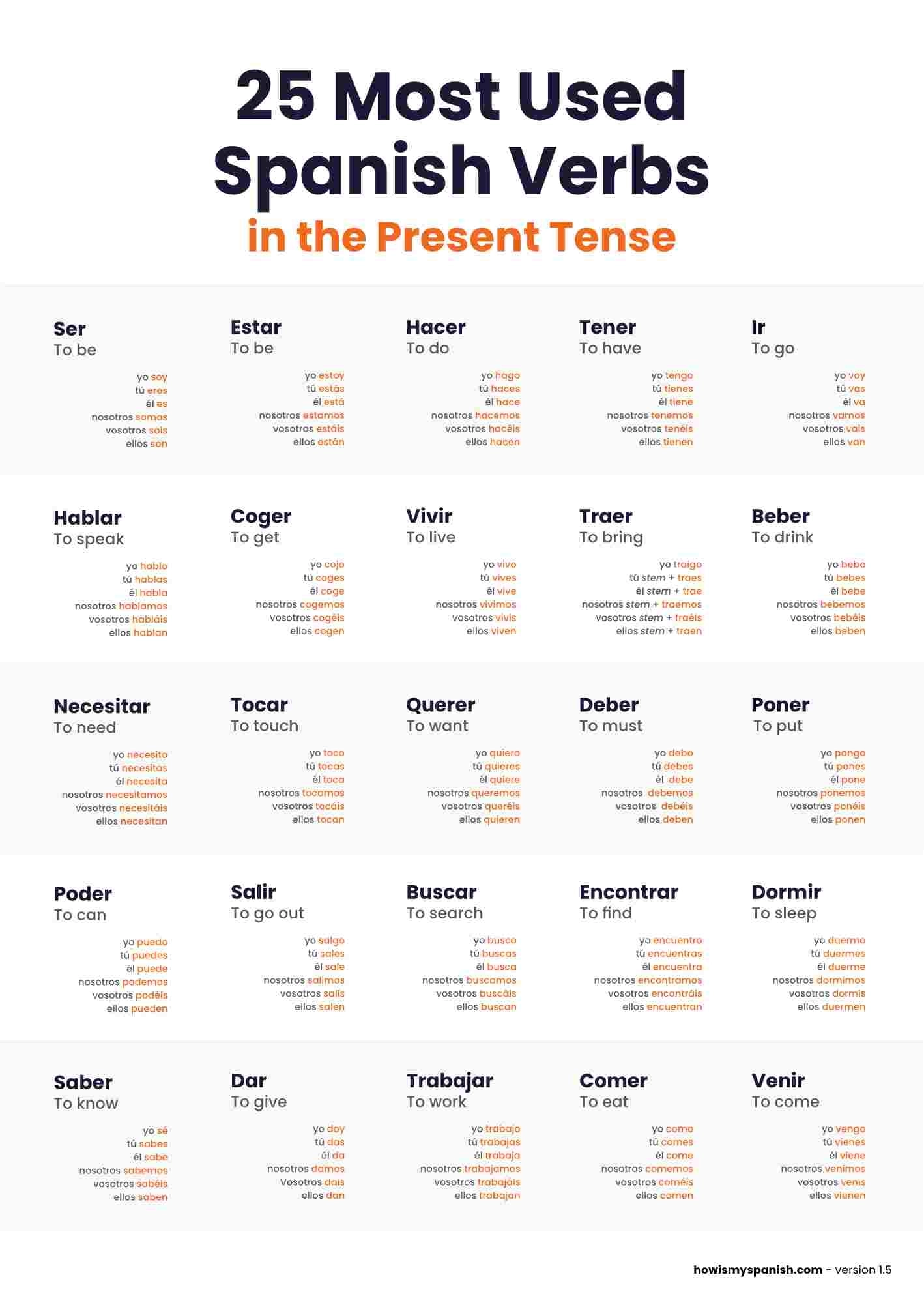 Here are some of the most frequently used Spanish verbs that you can print out for easy reference: