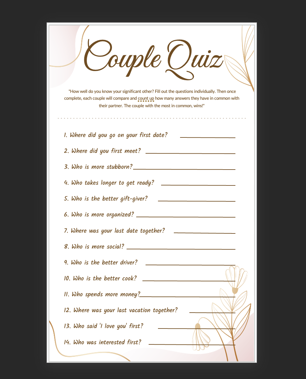 Next, format your quiz printable in a way that is easy to read and navigate. Consider using a mix of multiple-choice, true or false, and fill-in-the-blank questions to keep things interesting. Don’t forget to leave space for participants to write down their answers.