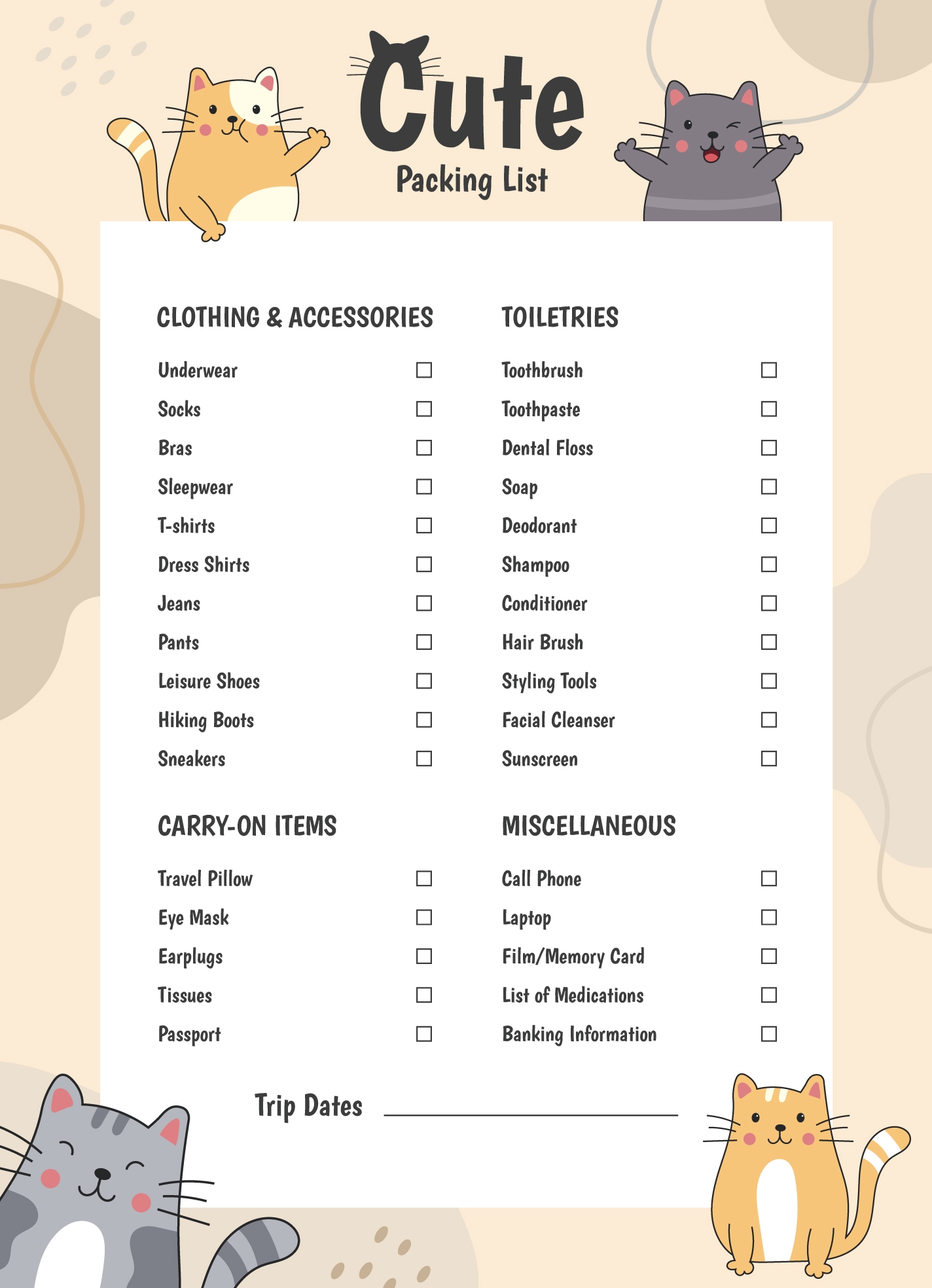 Cute Packing List Free Google Docs Template Gdoc io