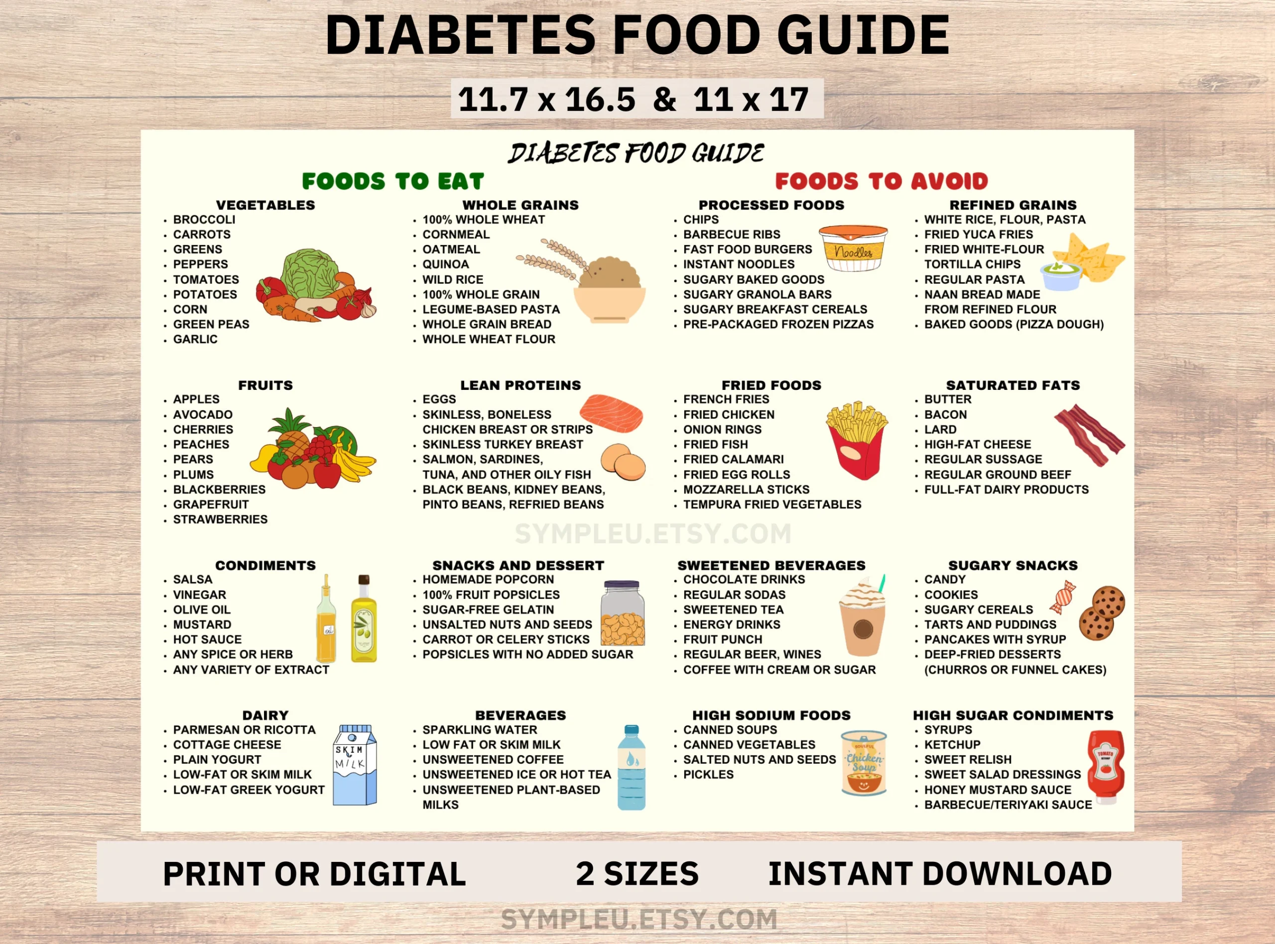 Amazon Diabetes Food List Printable PDF Low GI Diabetic Friendly Foods Meal Planning Grocery Guide For Blood Sugar Control 20x30inch Unframed Posters Prints