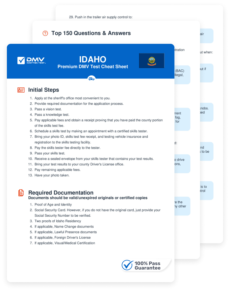 2025 Idaho DMV Permit Test Cheat Sheet 99 Pass Rate