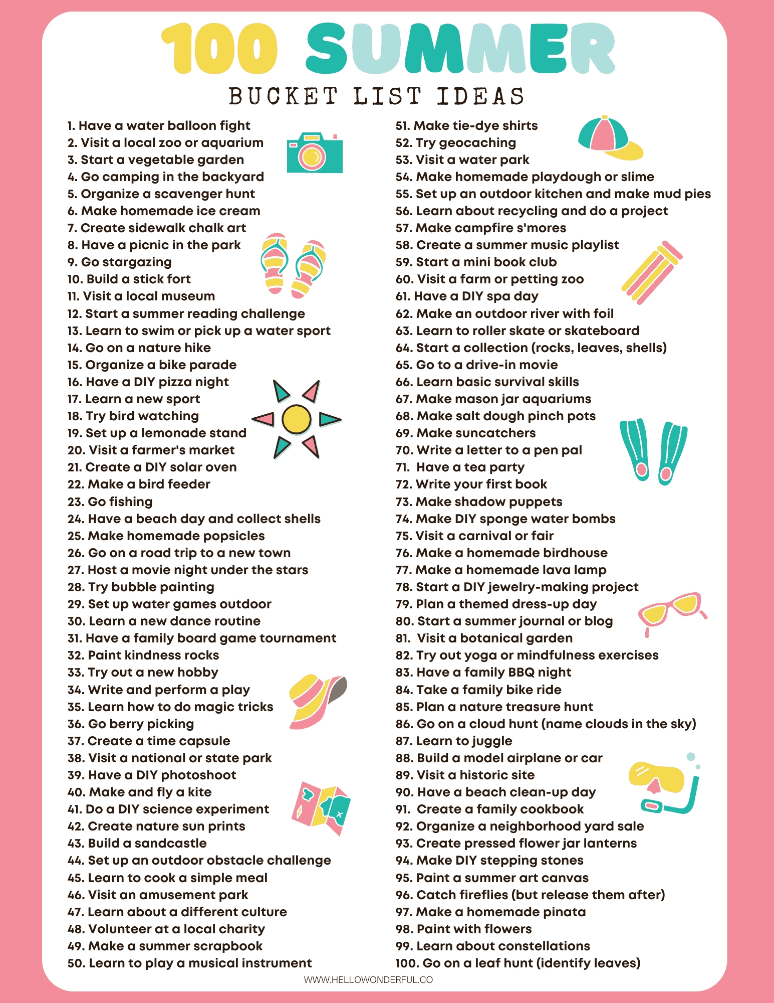 Summer Bucket List For Kids With Printable
