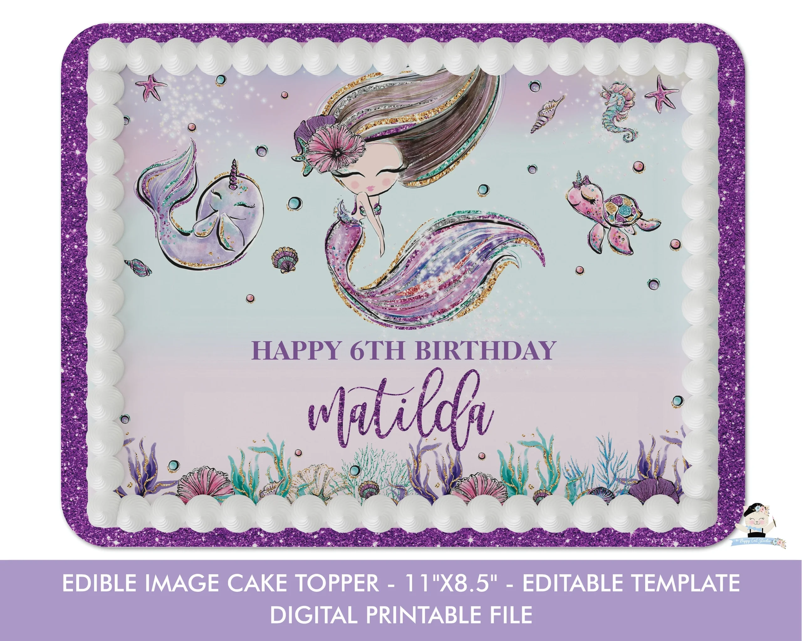Mermaid Edible Image Cake Topper Diy EDITABLE TEMPLATE Baby Shower Birthday Decoration Printable File Under The Sea INSTANT Download MT2 Etsy