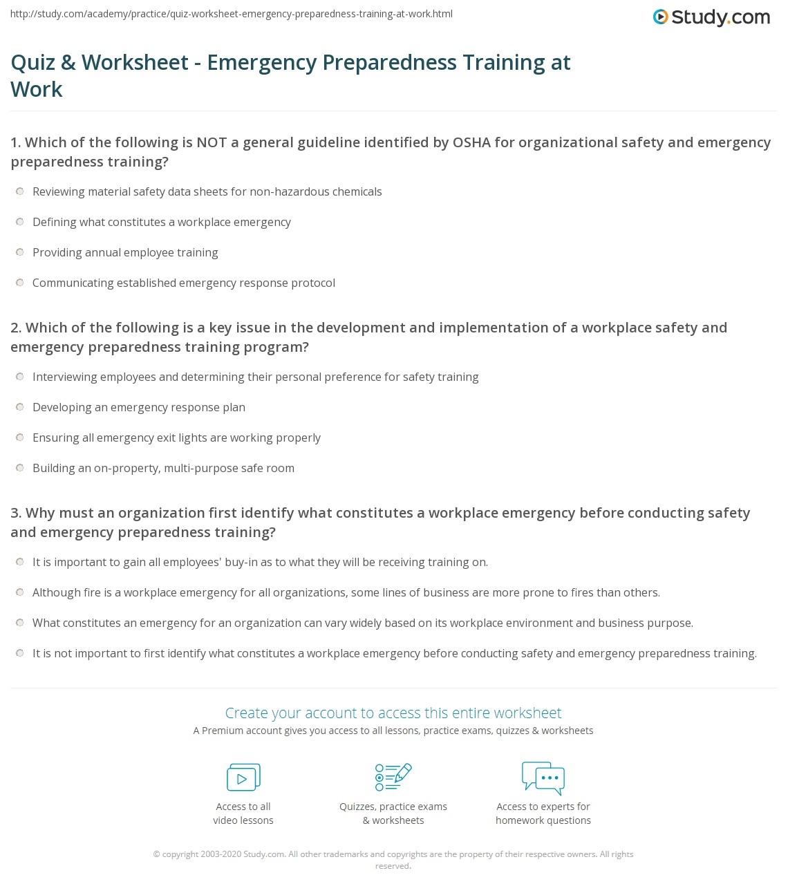 Quiz Worksheet Emergency Preparedness Training At Work Study