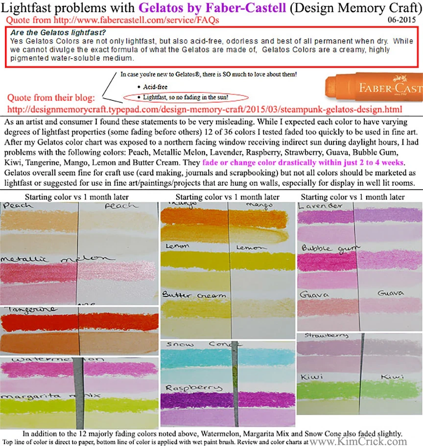 Lightfast Test GELATOS By Faber Castell Design Memory Craft FUGITIVE Kimberly Crick