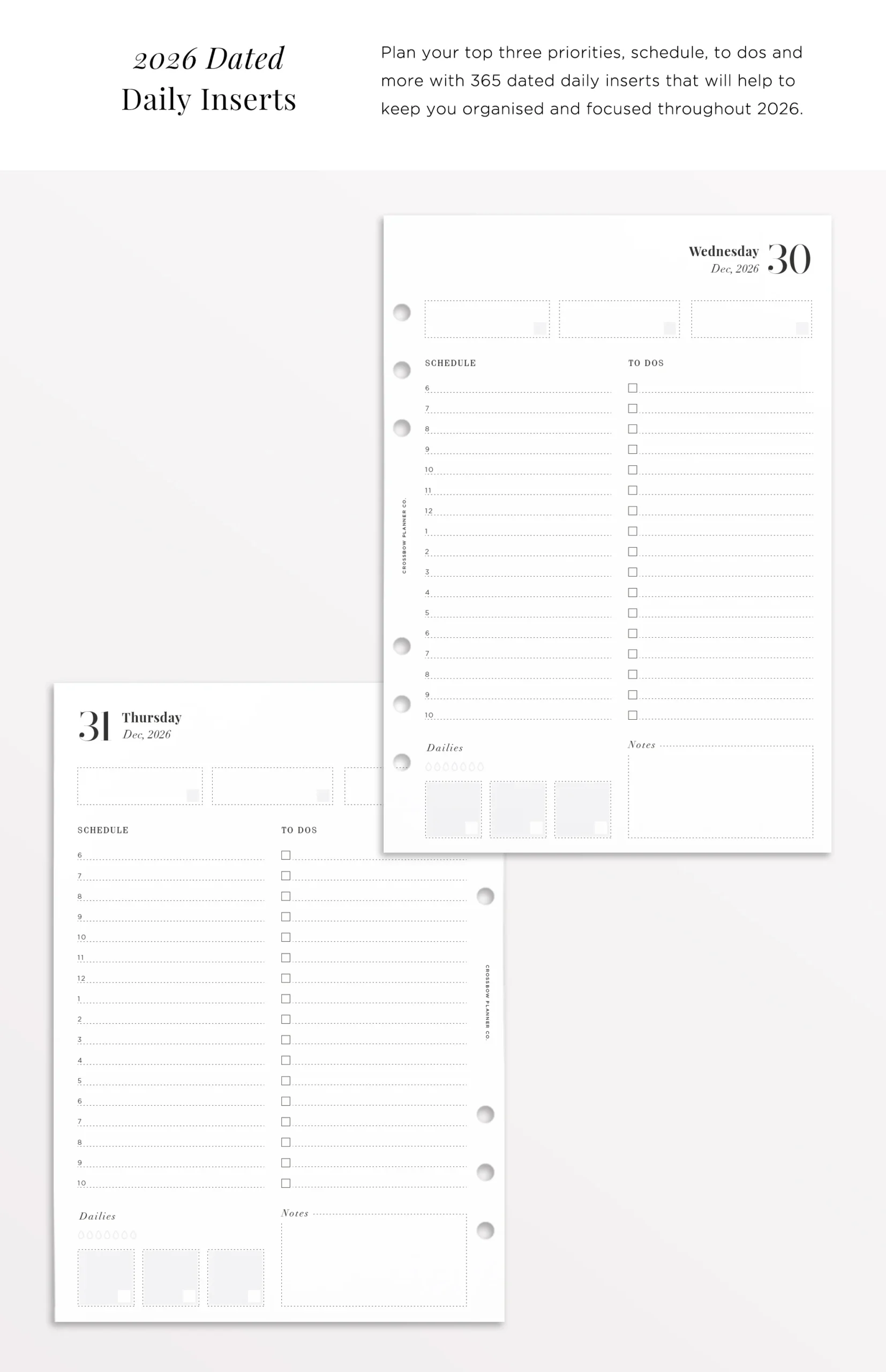 2026 A5 Planner Inserts Filofax Refills For 2026 Crossbow Planner Co