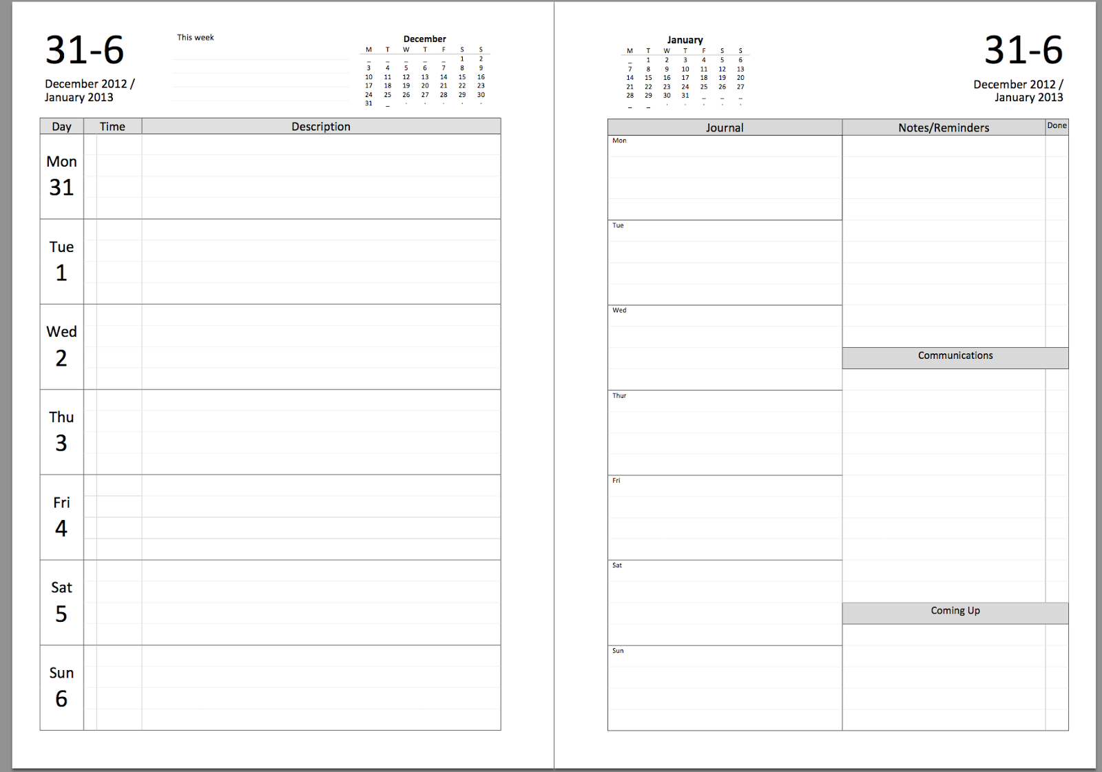 Filofax Inserts Free Printable 2026 Planner