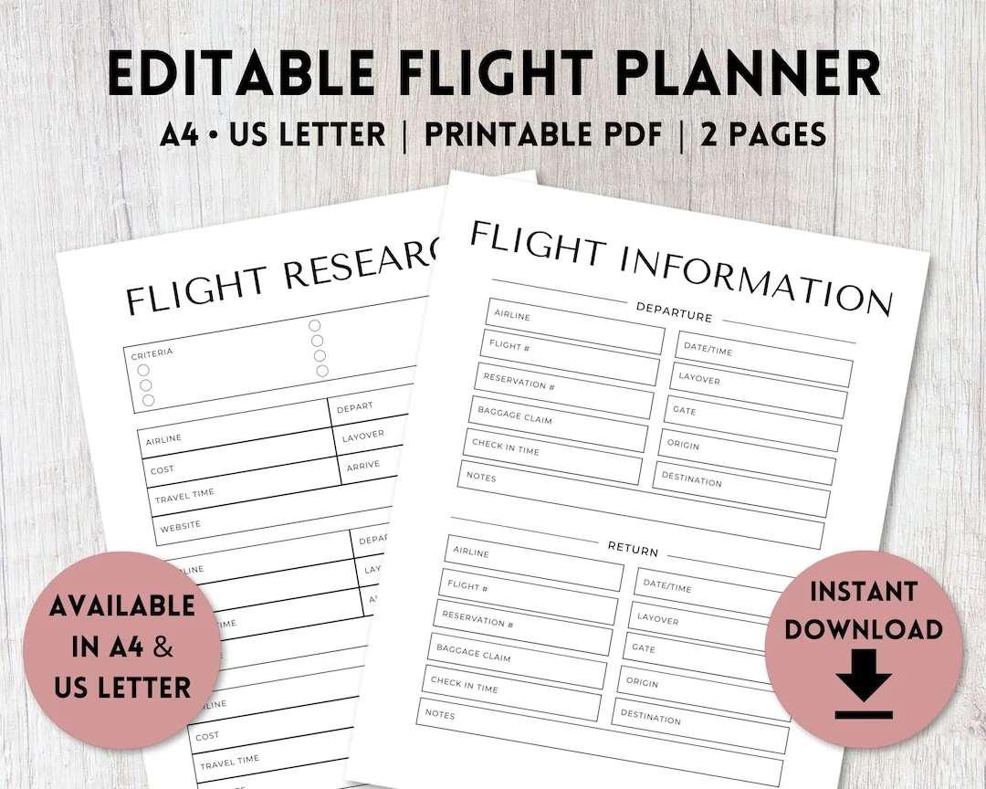 Simply download and print as many copies of the Flight Travel Printable Planner as you need for your upcoming trips. You can easily customize each planner to suit your specific travel needs, making it the ultimate tool for staying organized and stress-free while on the go.