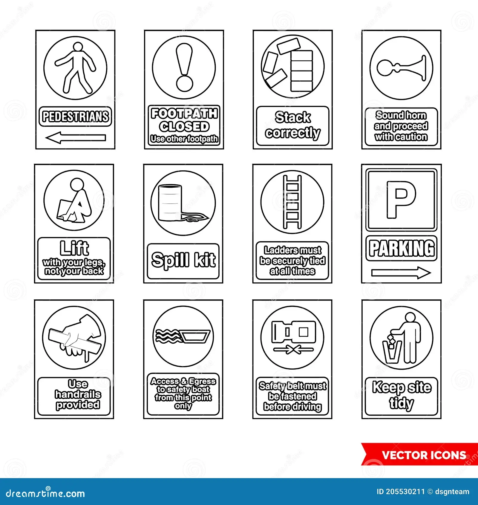 Construction Mandatory Signs Icon Set Of Outline Types Isolated Vector Sign Symbols Icon Pack Stock Illustration Illustration Of Information Icon 205530211