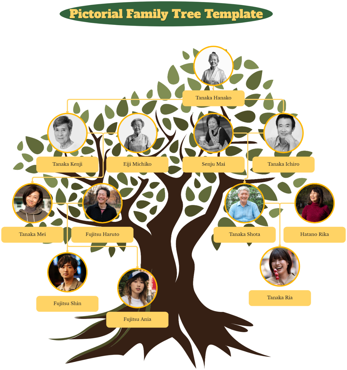 Our color-coded family chart is designed to make it easy for you to see who’s who in your family. Each color represents a different branch of your family tree, making it simple to follow along and see how everyone is connected.