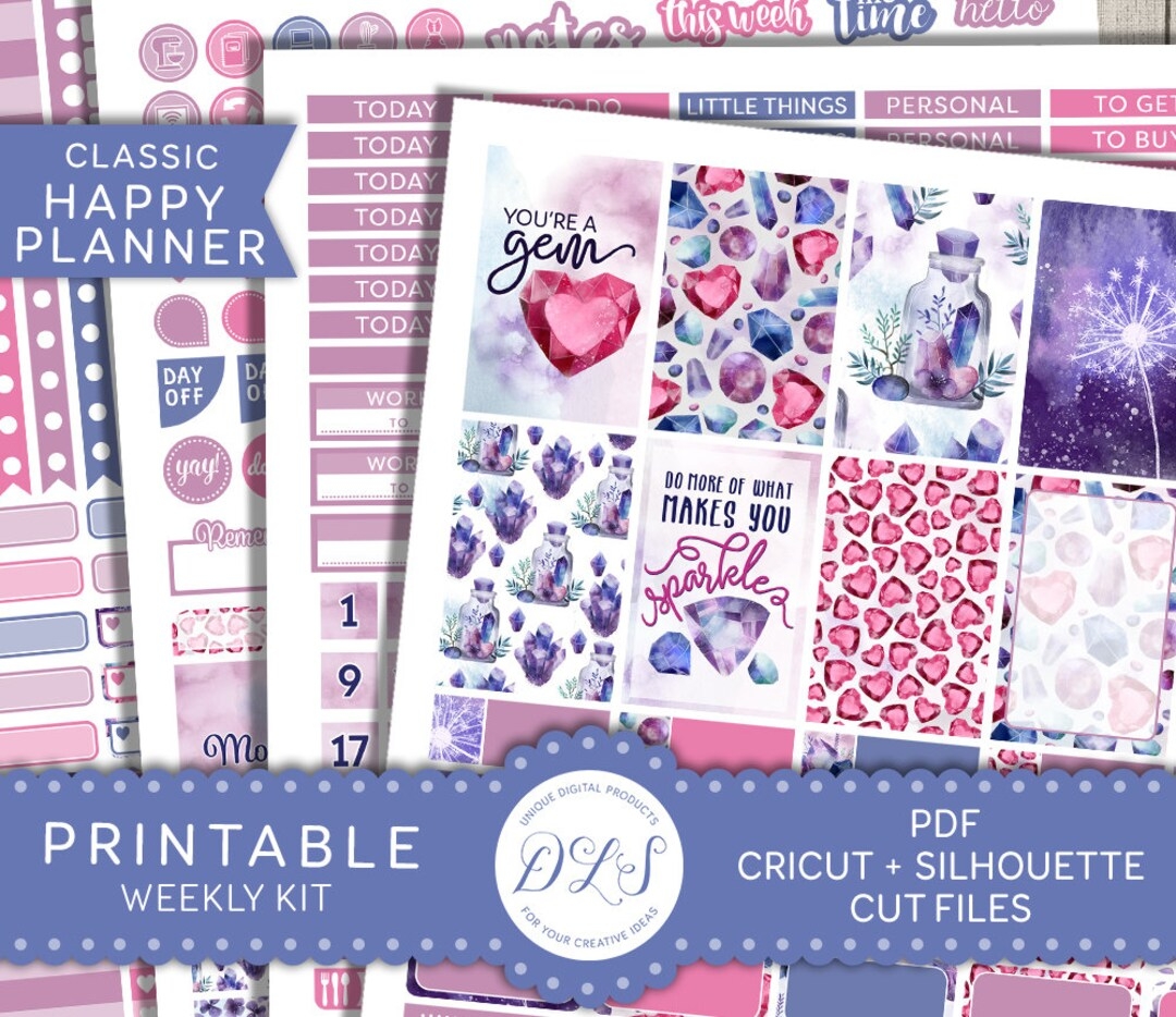 PRINTABLE Big Happy Planner Stickers Kit Gems Planner Stickers Gemstones Planner Stickers Kit Printable Weekly Stickers Kit BW127 Etsy