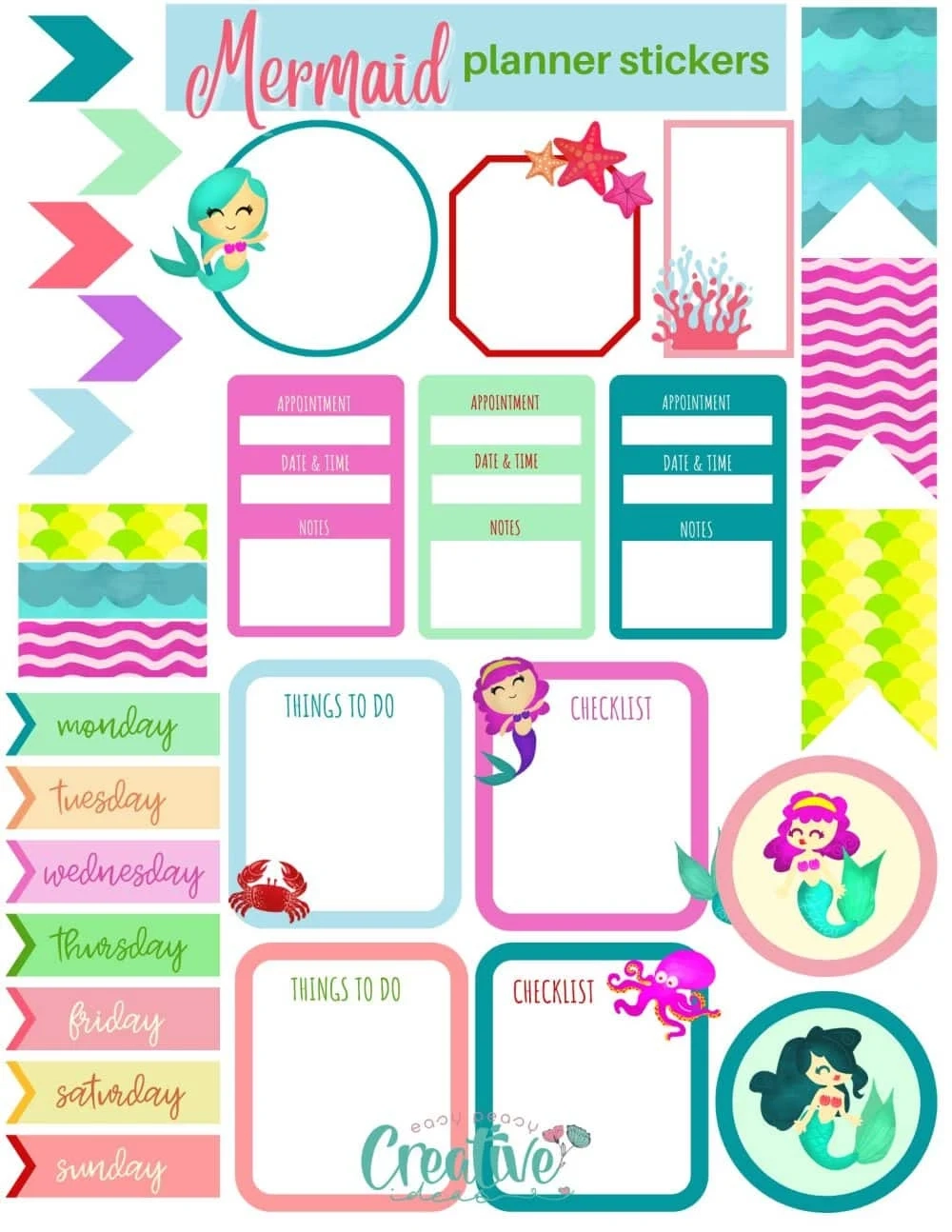Fun Printable MERMAID STICKERS Easy Peasy Creative Ideas