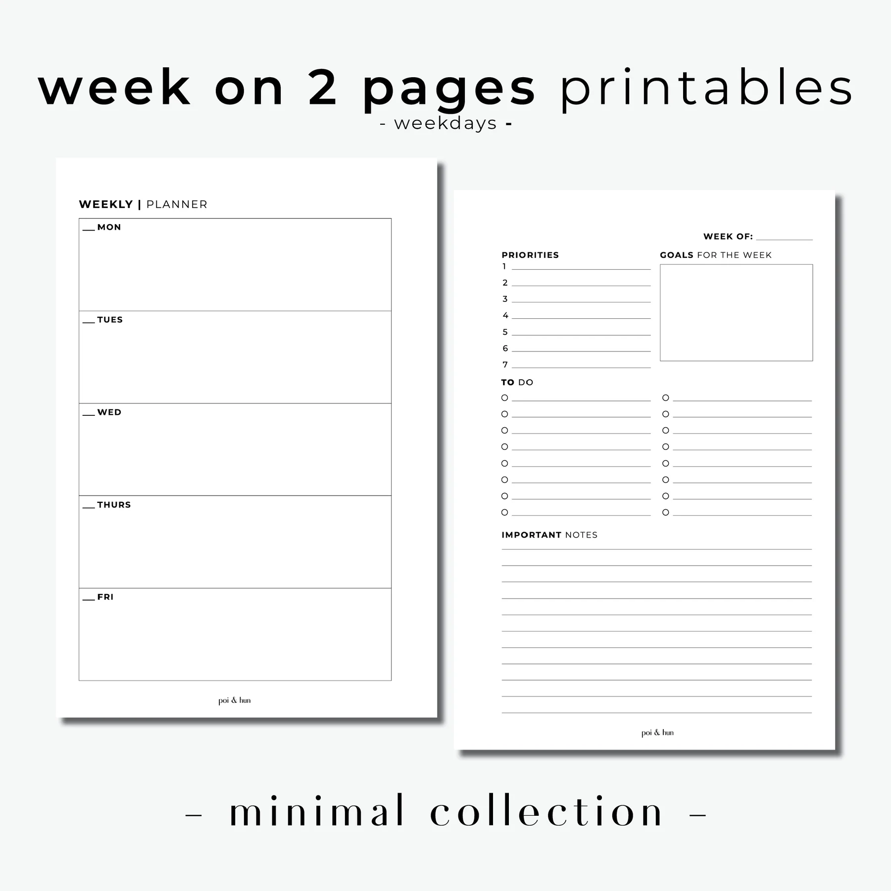 PRINTABLE Week On 2 Pages Horizontal Planner Insert WO2P Minim Poi Hun