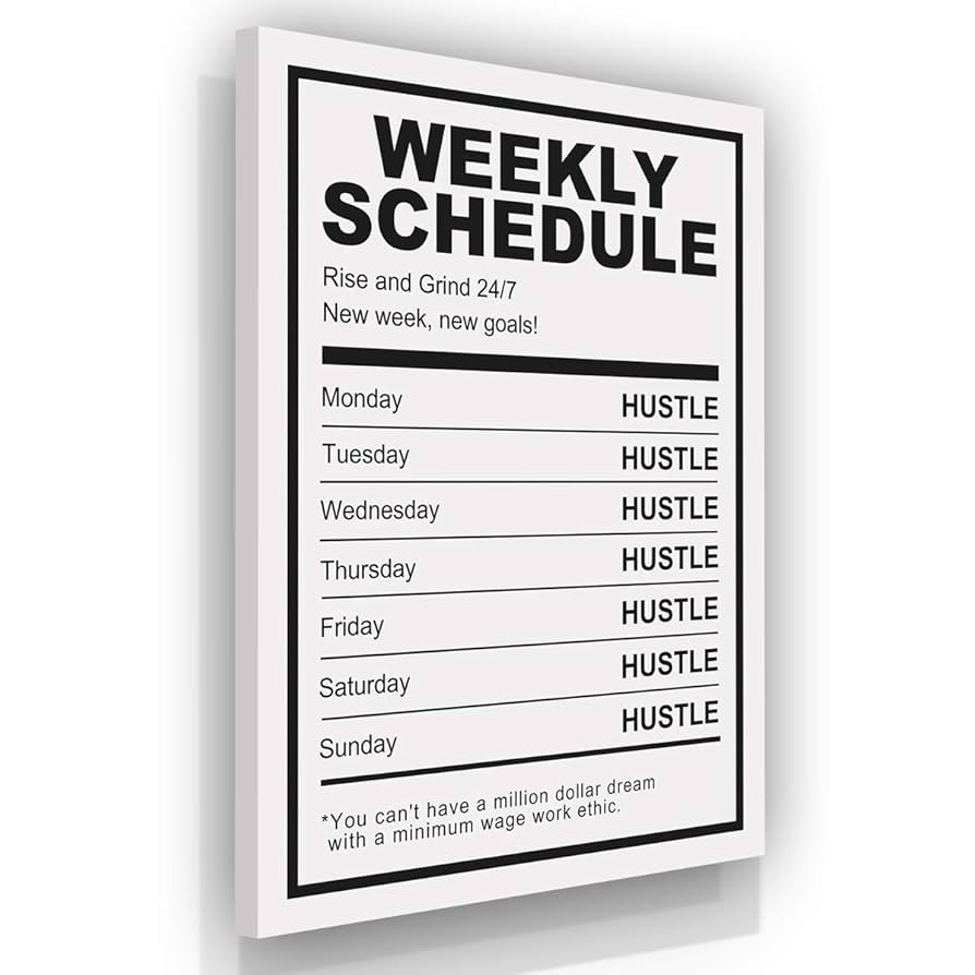Amazon Hustle Weekly Schedule Canvas Print Motivational Wall Office Decor Modern Art Entrepreneur Inspirational Rise Grind Entrepreneurship Success 24 X 18 Posters Prints