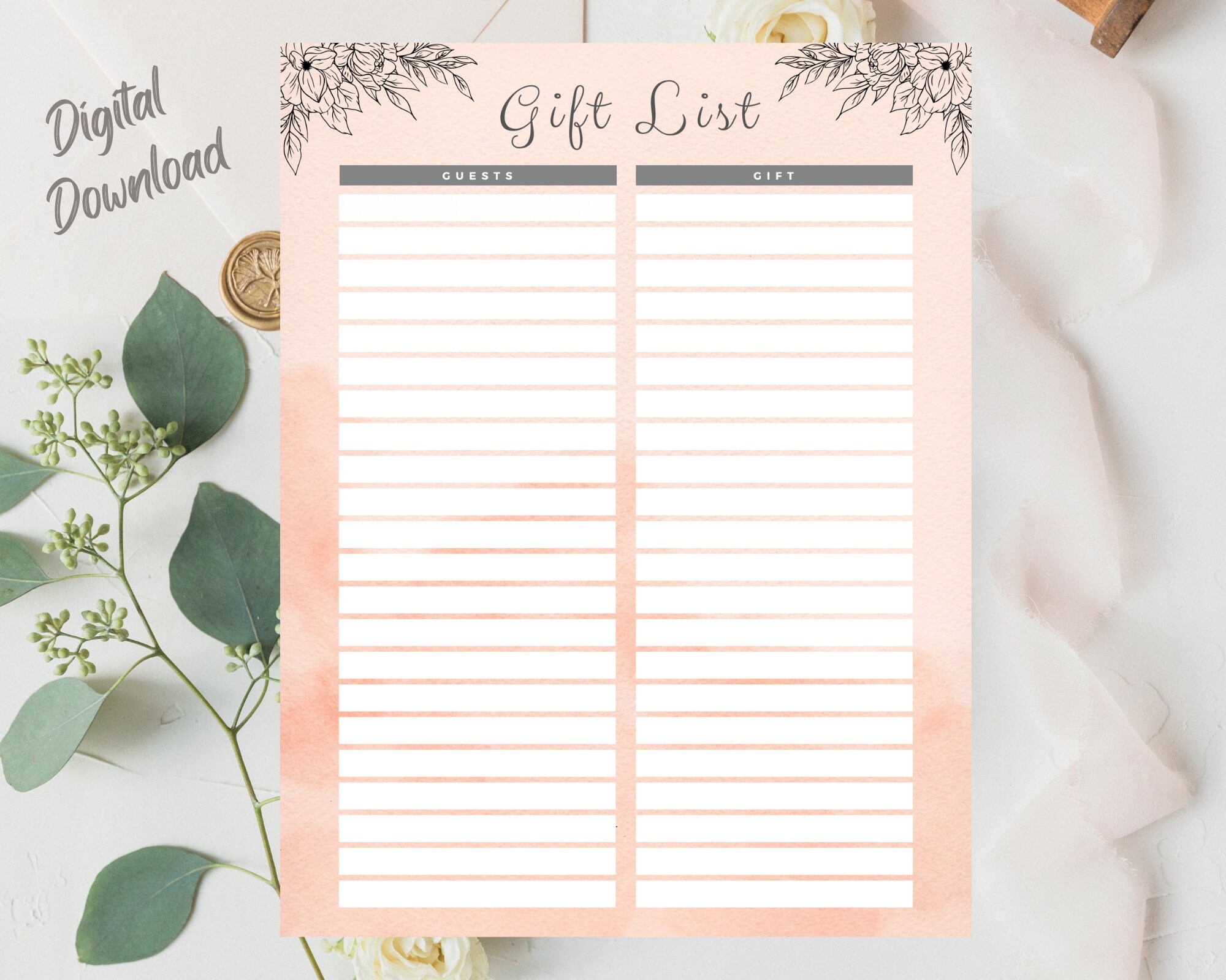 Gift List Gift Tracker Gift Log Weddings Bridal Showers Baby Showers Birthdays Digital Download Printable Floral Accents Etsy