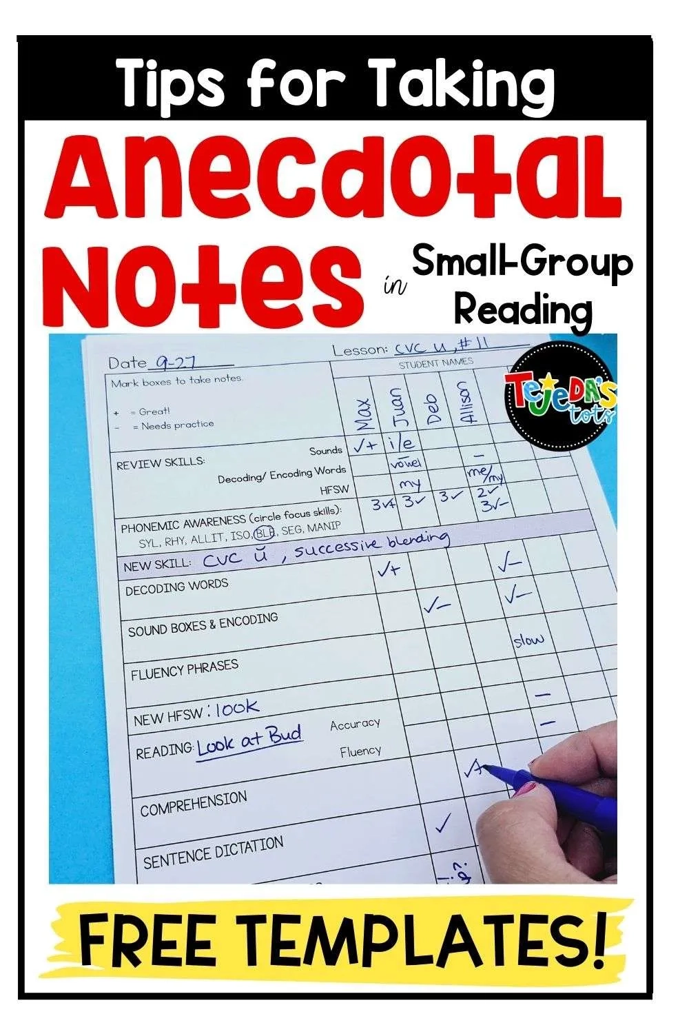 Anecdotal Notes In Small Group Reading Tips And Free Templates Tejeda s Tots