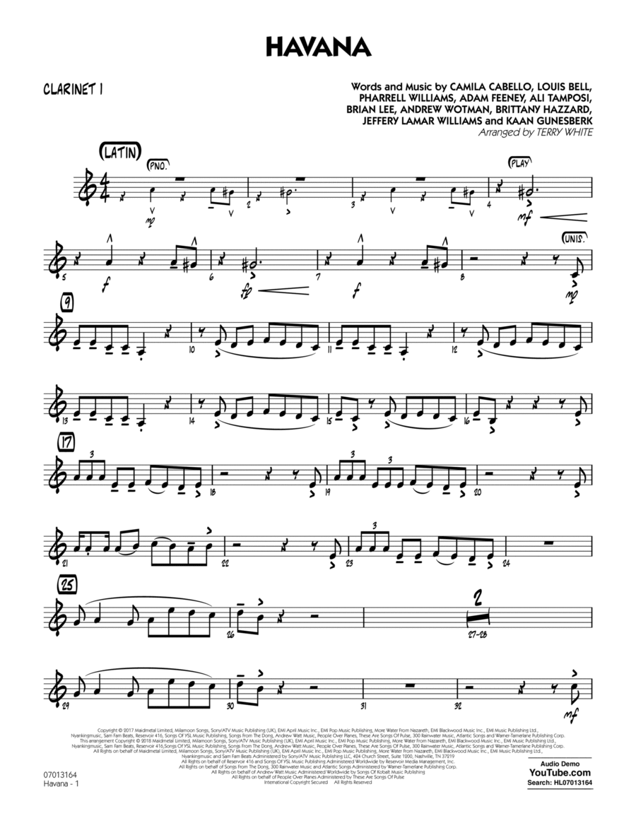 Havana Clarinet 1 By Camila Cabello Clarinet Early Intermediate Digital Sheet Music Sheet Music Plus