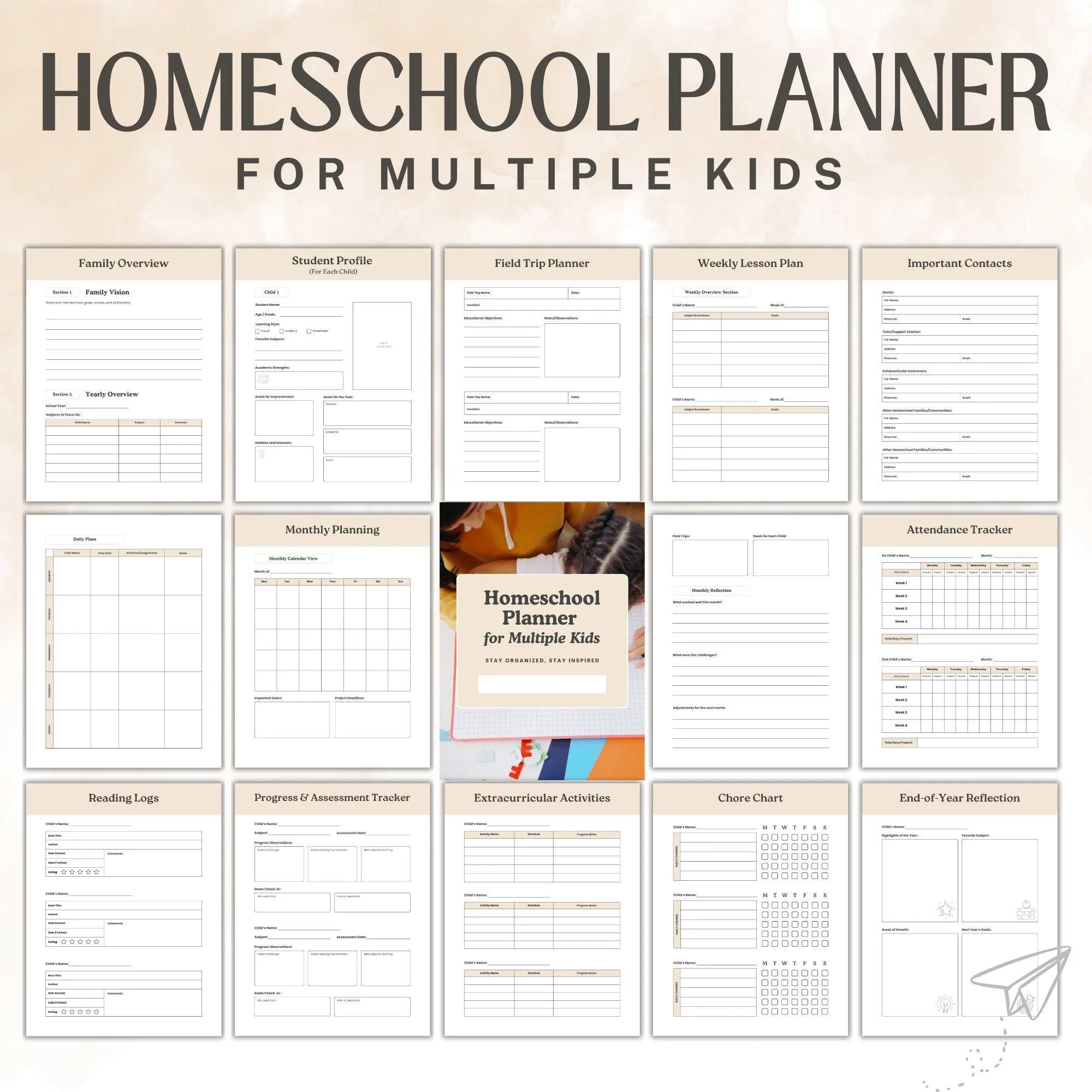 Say goodbye to the chaos of trying to manage multiple children’s homeschooling schedules on your own. The Homeschooling Printable Multiple Children Planner is here to simplify your life and make homeschooling a breeze for you and your family.