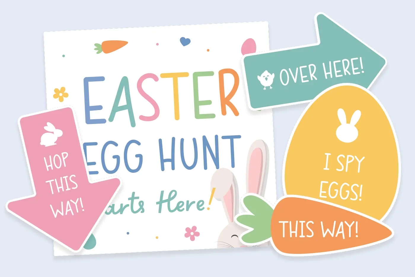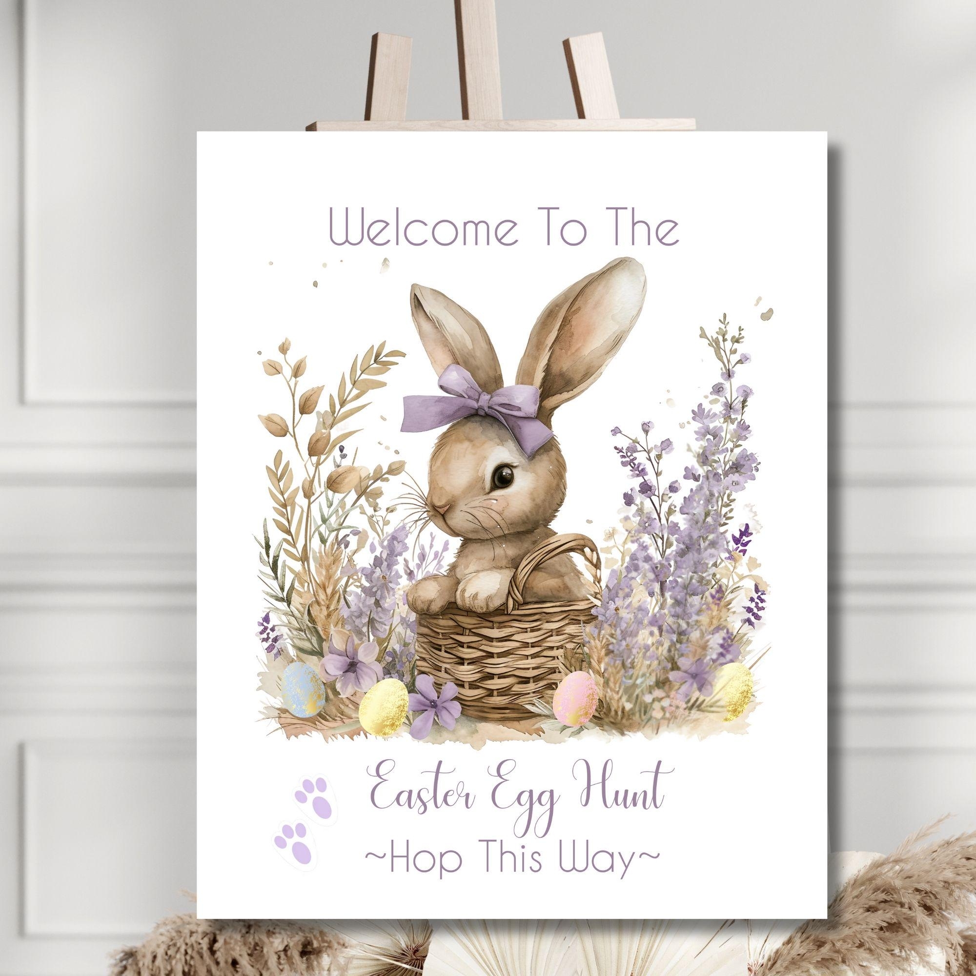 With its charming design featuring cute bunnies hopping along, this printable sign is perfect for directing guests to the right place or simply adding a festive touch to your decor. You can easily print it out at home or your local print shop, making it a convenient and affordable option for your event.