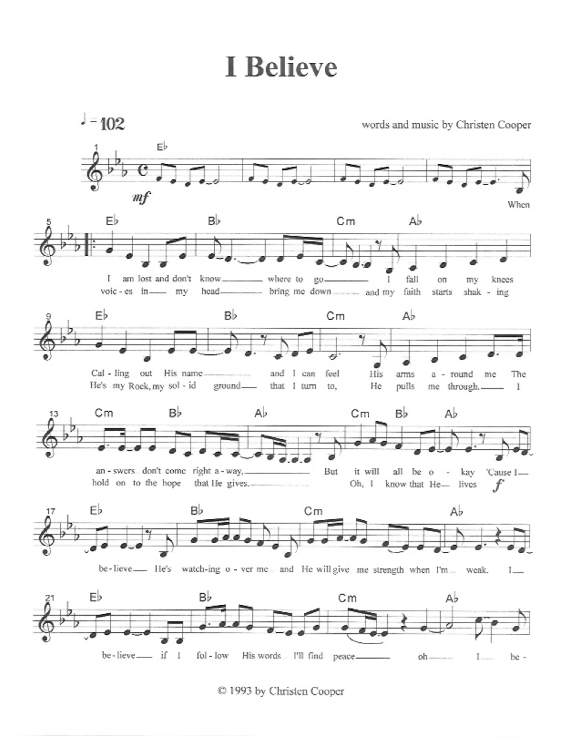 I Believe Free Printable Sheet Music