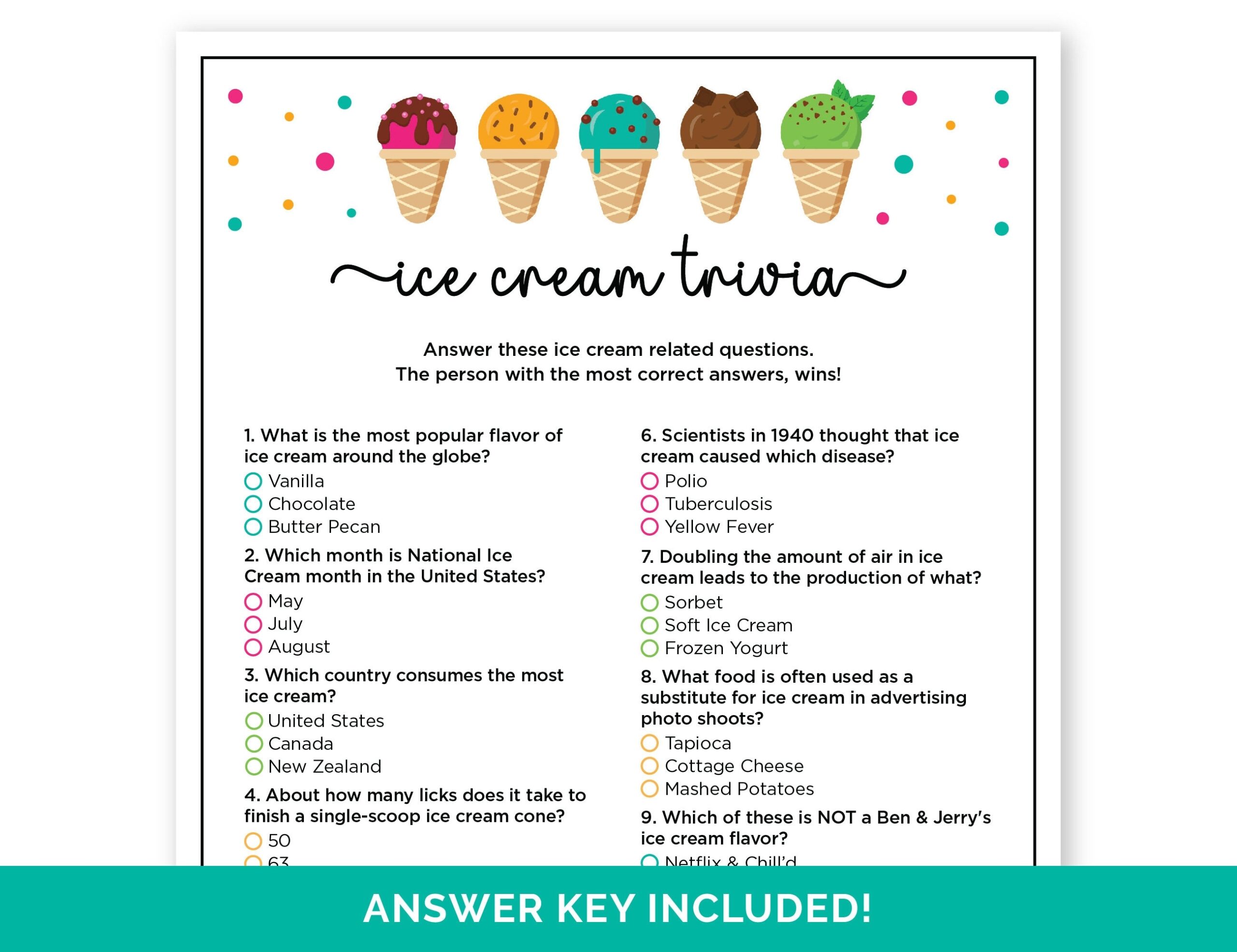 So, next time you’re in the mood for a tasty treat, why not treat yourself to some ice cream and test your knowledge with our printable trivia quiz? You might just learn something new about this beloved dessert while satisfying your sweet tooth. Happy scooping!