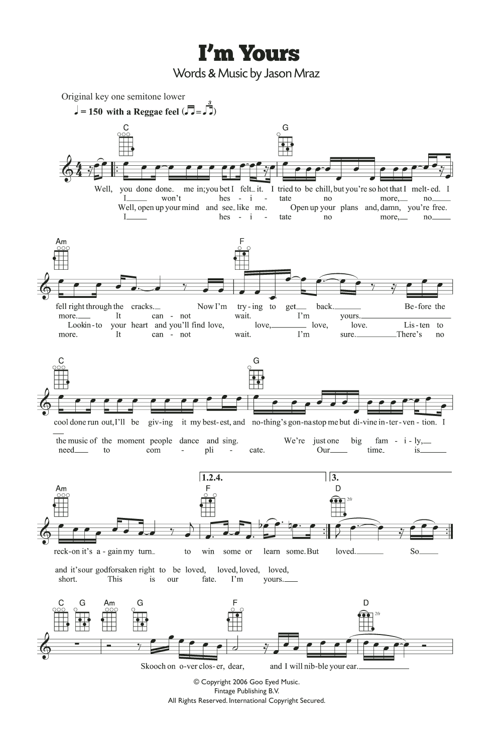 I m Yours By Jason Mraz Sheet Music For Ukulele At Sheet Music Direct