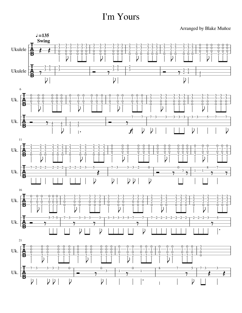 I m Yours Sheet Music And Tab For Ukulele Mixed Duet MuseScore