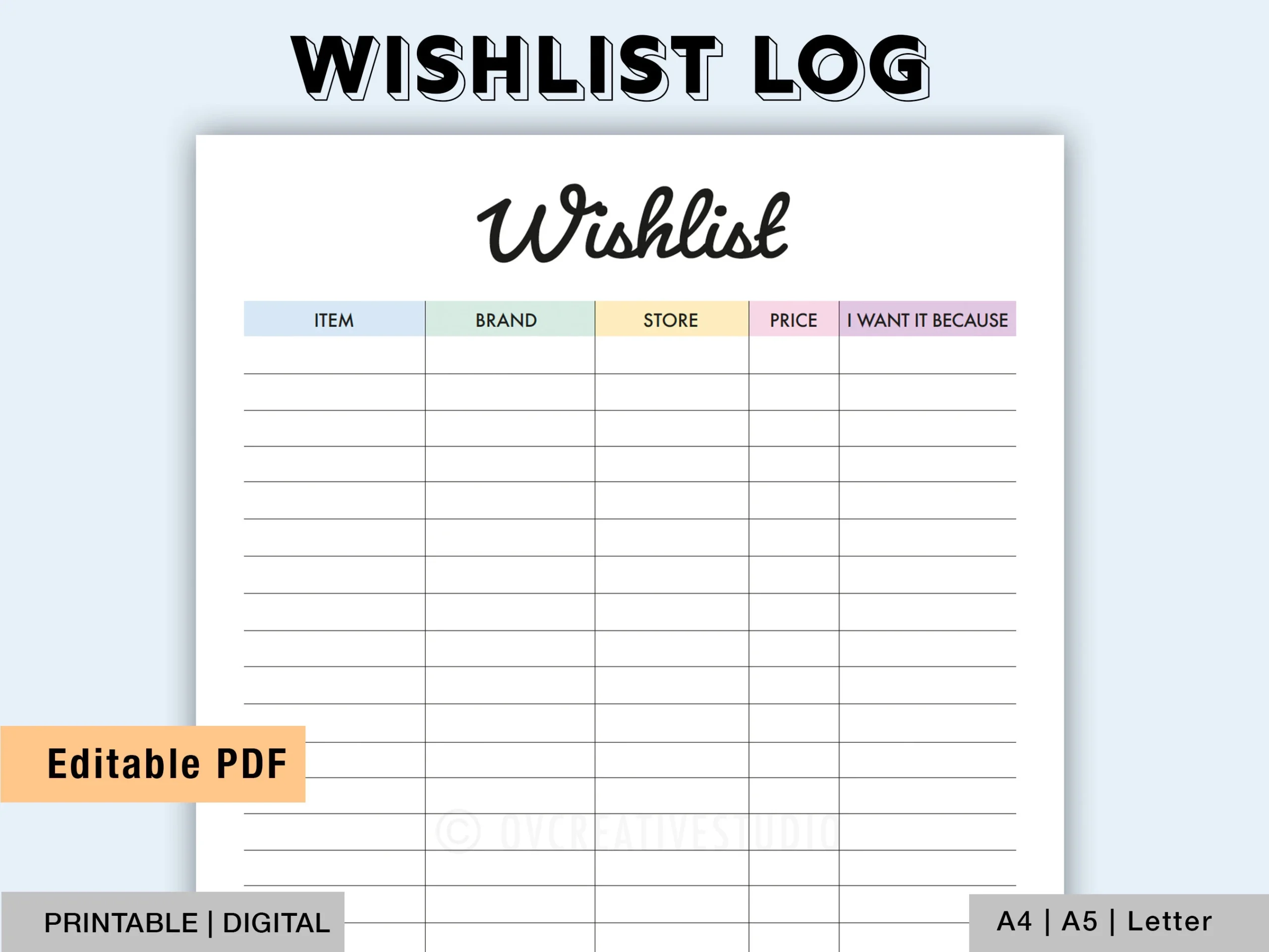 Wishlist Printable Wishlist Printable Tracker Template Shopping Wish List Printable INSTANT Download PDF Items To Buy a4 A5 Half LETTER Etsy