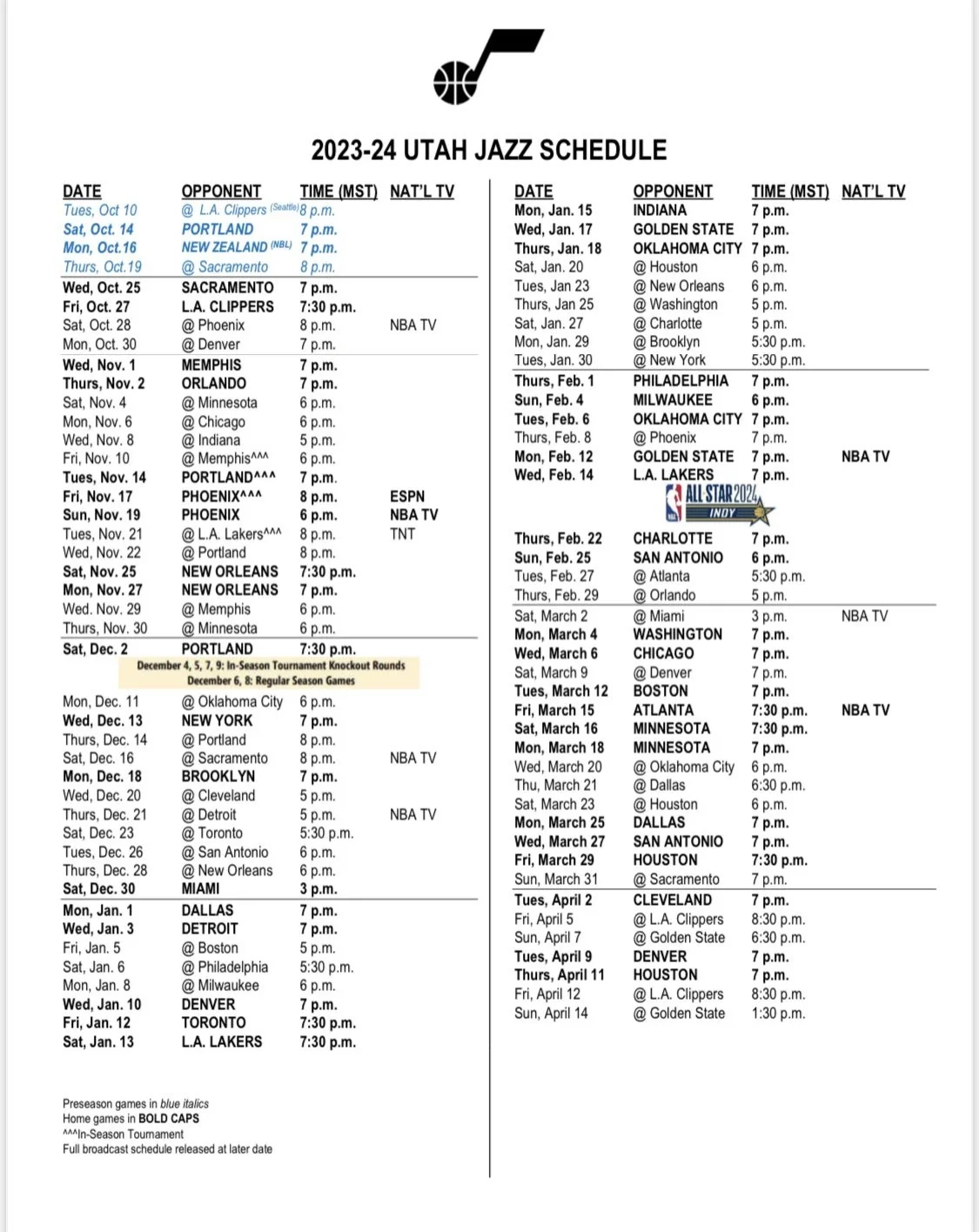 Utah Jazz Release Their 2024 25 NBA Schedule