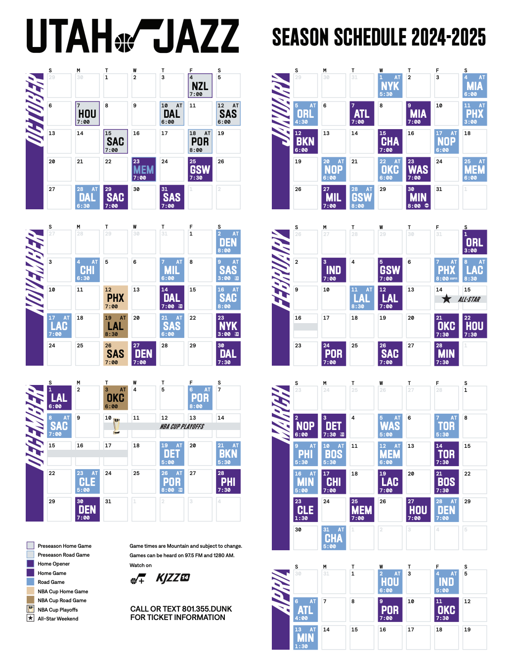 With a Jazz basketball schedule printable, you can easily see when and where the team is playing. You can hang it on your fridge, keep it at your desk, or carry it in your bag so you never miss a game. It’s a convenient way to stay up-to-date with all the action.