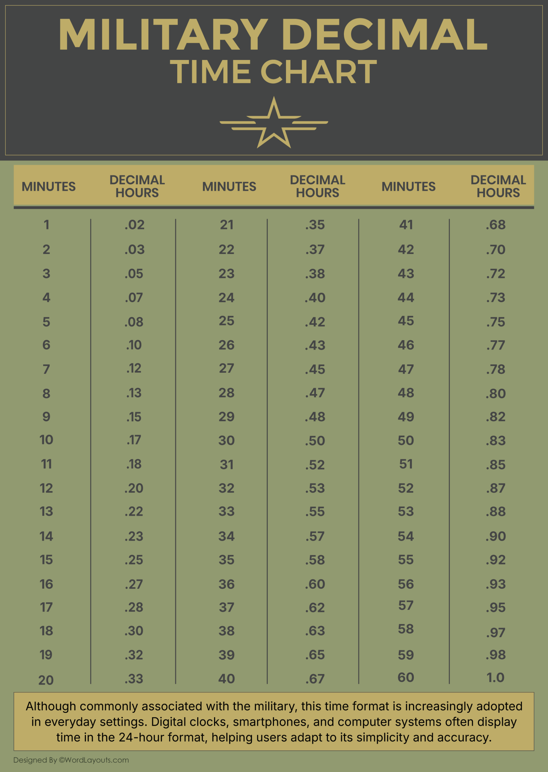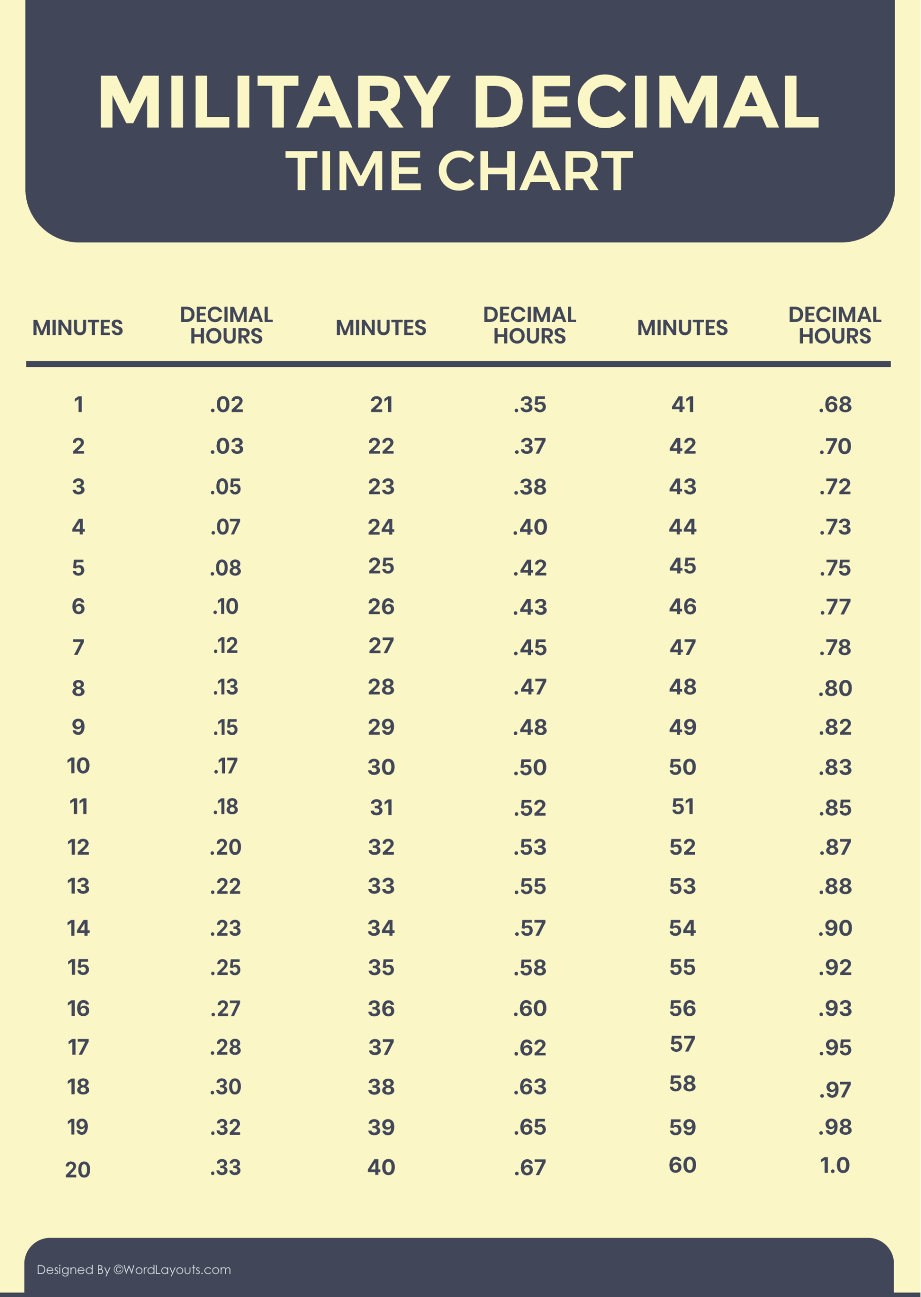 Minutes To Decimal Hours Conversion Military Chart WordLayouts