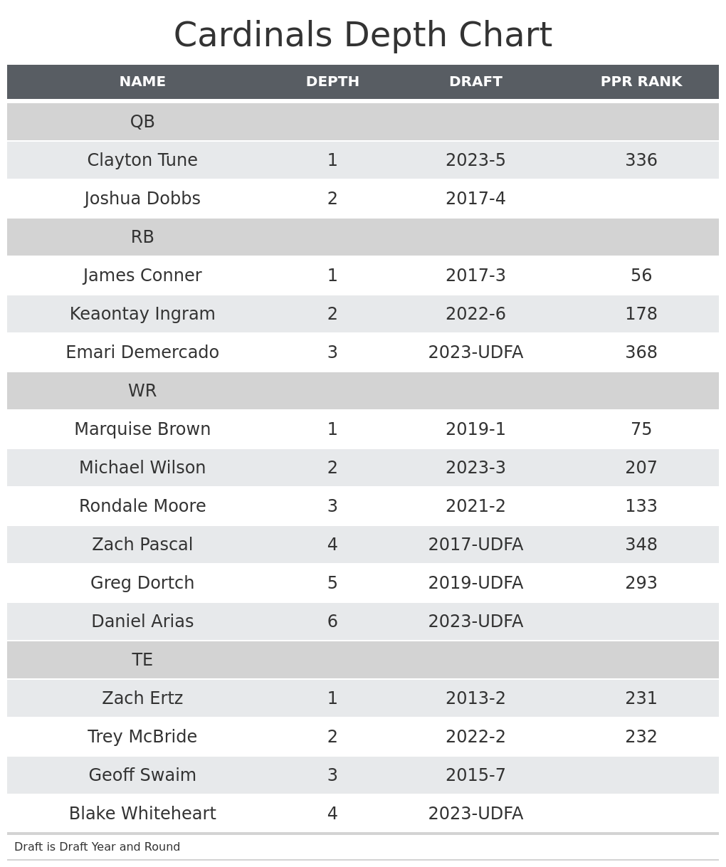 Nfl Fantasy Depth Chart Printable