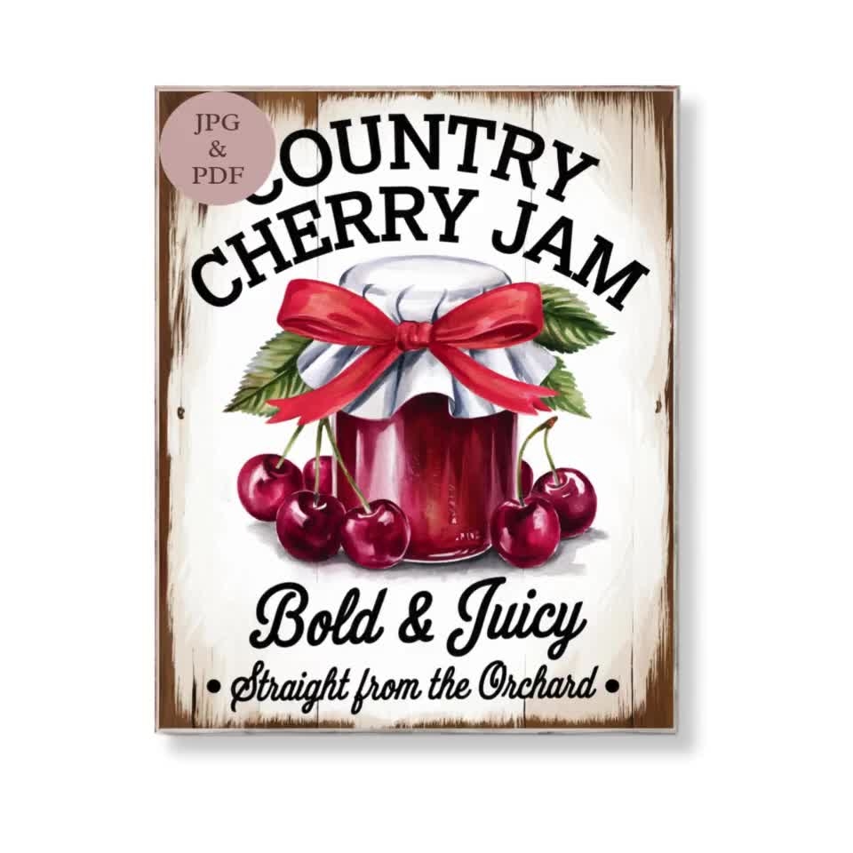 Country Cherry Jam Sign Vintage Kitchen Printable 8×10 PDF JPG Digital Download Etsy