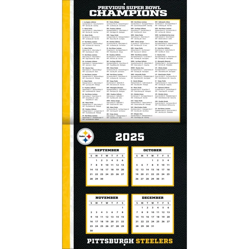 NFL Pittsburgh Steelers 2026 Wall Calendar Calendars