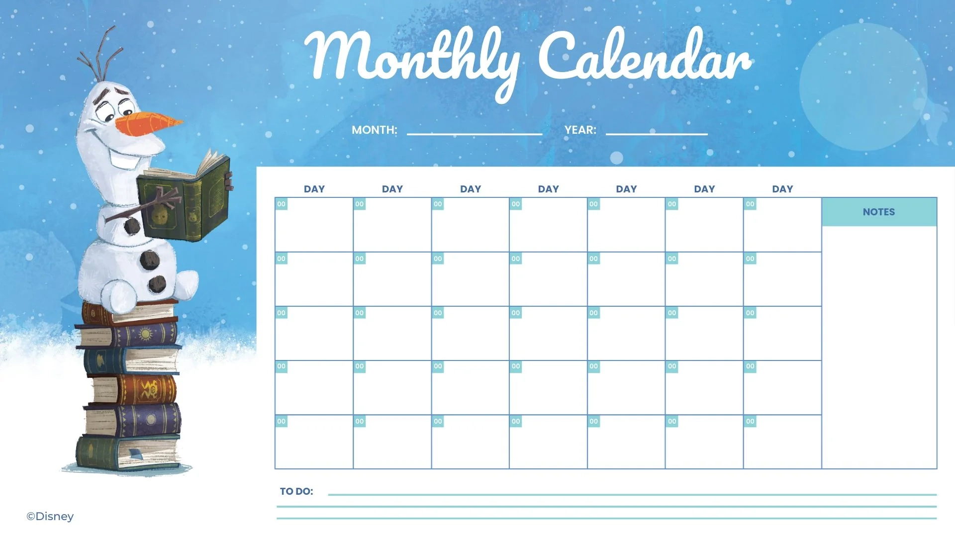 FREEBIE Disney Frozen Olaf PDF Printable Monthly Calendar Plannerologystudio