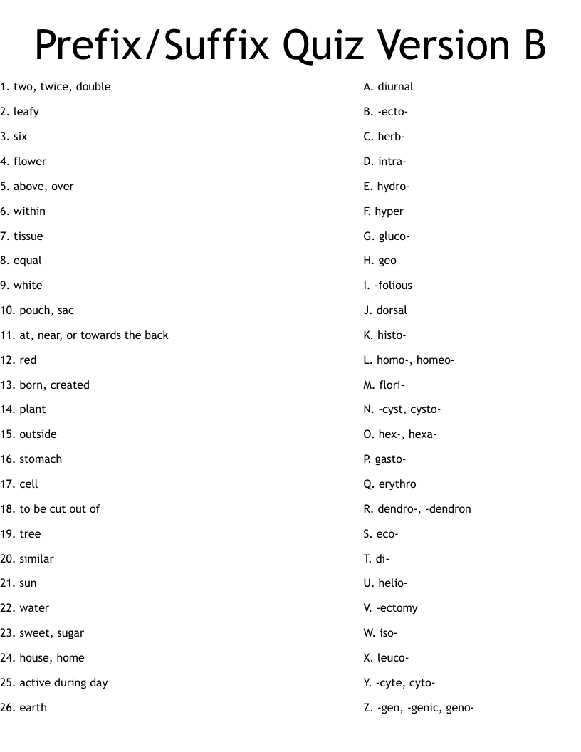 Prefix Suffix Quiz Version B Worksheet WordMint